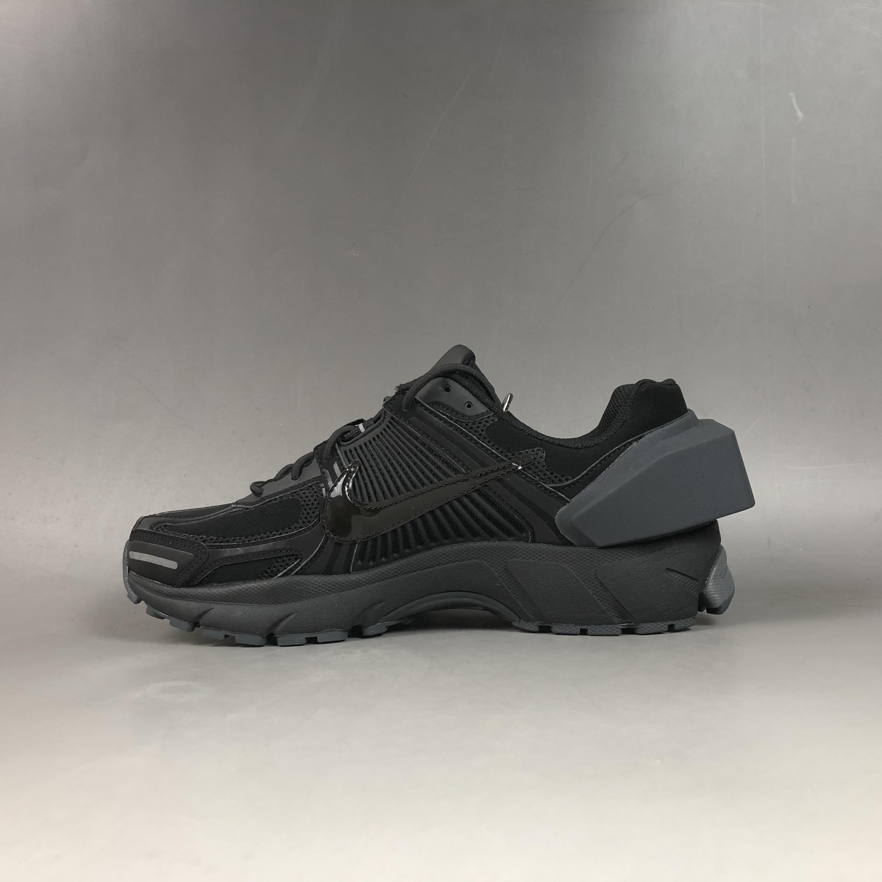 A silhouette that made its debut back in 2010, it has been given a radical redesign for this release. Stripped of its conventional PU coatings, this means that the A COLD WALL x Nike Zoom Vomero 5s Black’s ageing process will be accelerated, meaning that the sneaker’s appearance will change over time. As stealthy as it gets, a subtle Swoosh adorns the lateral and medials sides, while A COLD WALL branding makes its way to the toebox.