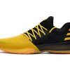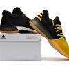 Looking closer at the ‘Red Glare’ adidas Harden 1, they feature shades of Red across the panels which extends through the tongue, heel and part of the midsole. Following we have what appears to be Orange that takes over the leather toe, the other part of the midsole and outsole. Other details include a knitted upper, Black laces and a translucent outsole