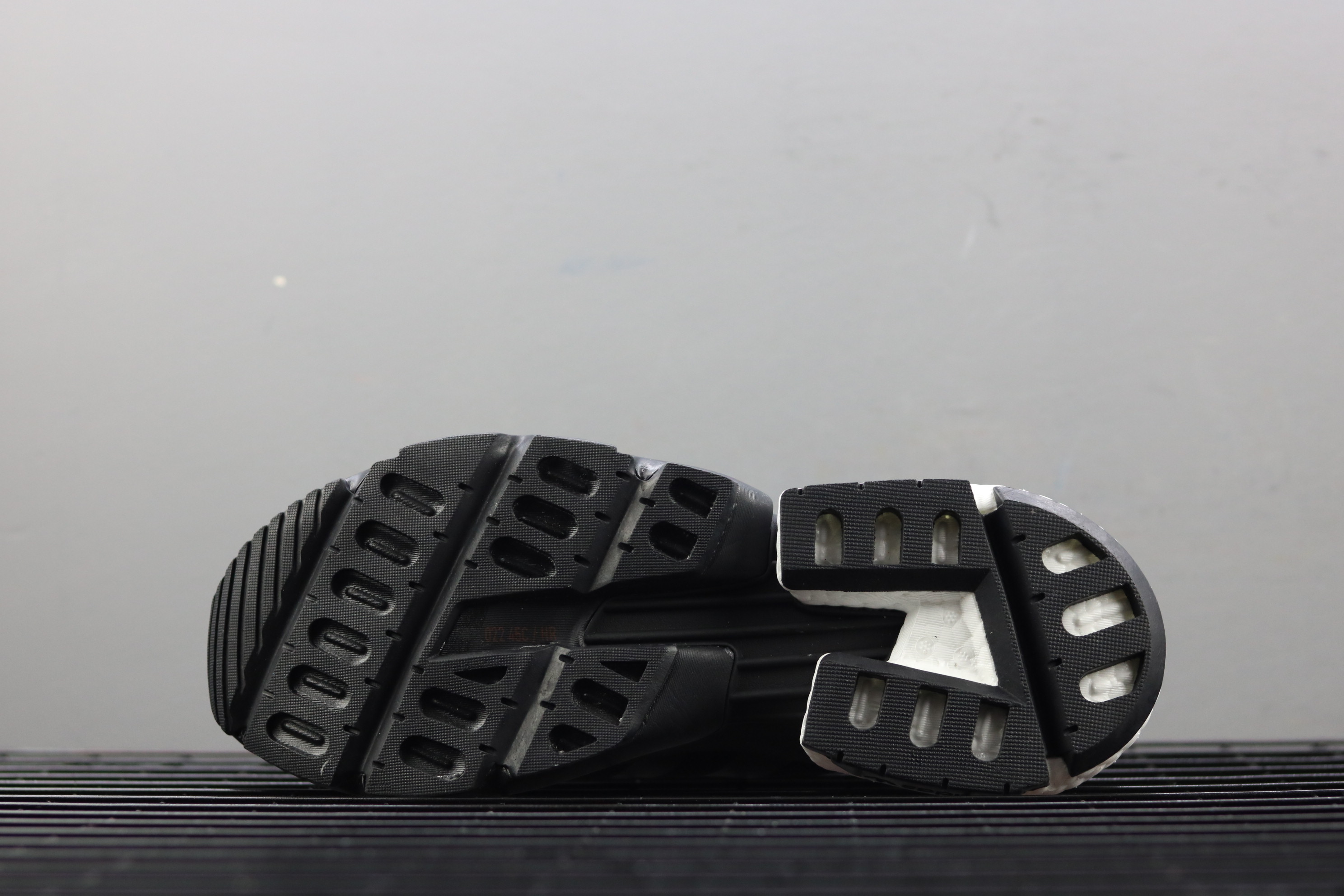 This iteration of the model comes dressed in a sleek Black and White color scheme. It features a sock-like collar with tonal Three Stripes on the sides. POD-S3.1 branding on the on the lacing system and heel atop a Boost midsole completes the design.