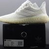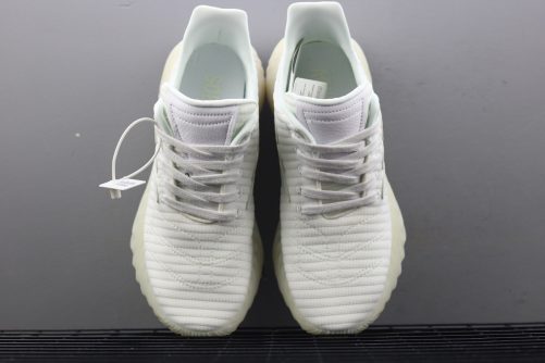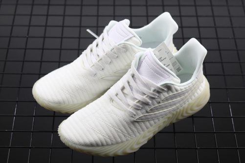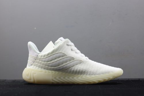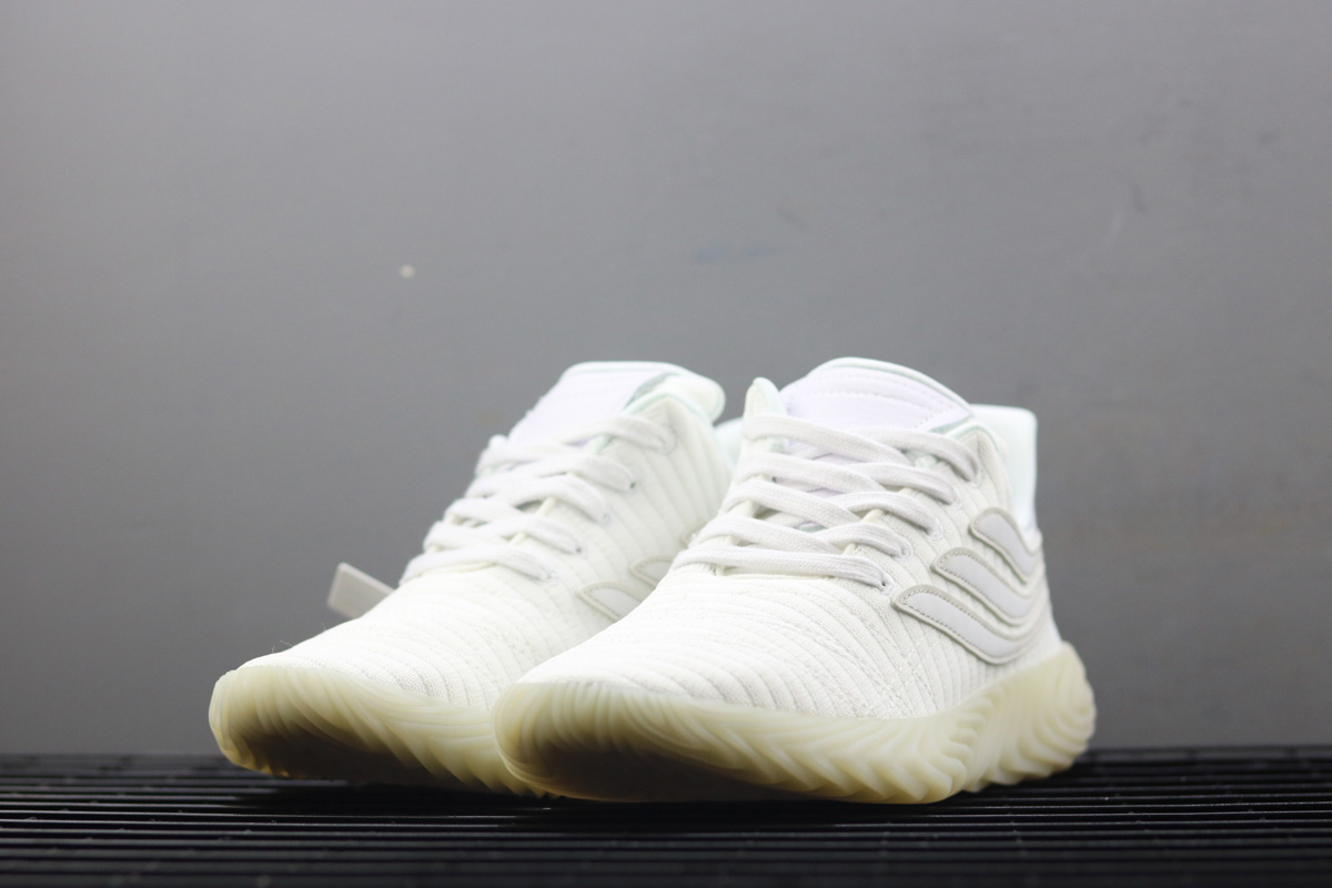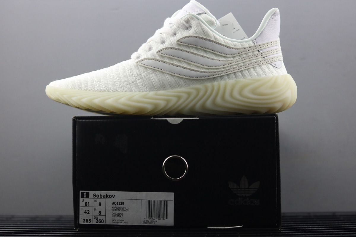 The World Cup’s second round is in full swing, and adidas is doing their part in adding to the soccer craze as their new Sobakov silhouette boasts a style heavily influenced by the beautiful game. Arriving in a striking combination of white and gum the shoe features a knitted ribbed white textile upper with cross-stitching swooping across the toebox. The usual three stripes receive a unique twist as well: they’re slimmed down for a sleeker look and also elongated, wrapping all the way around the heel and to the medial side of the foot. A patch of white leather on the heel adds a premium touch, and a pitch-ready thick gum outsole completes the shoe’s look