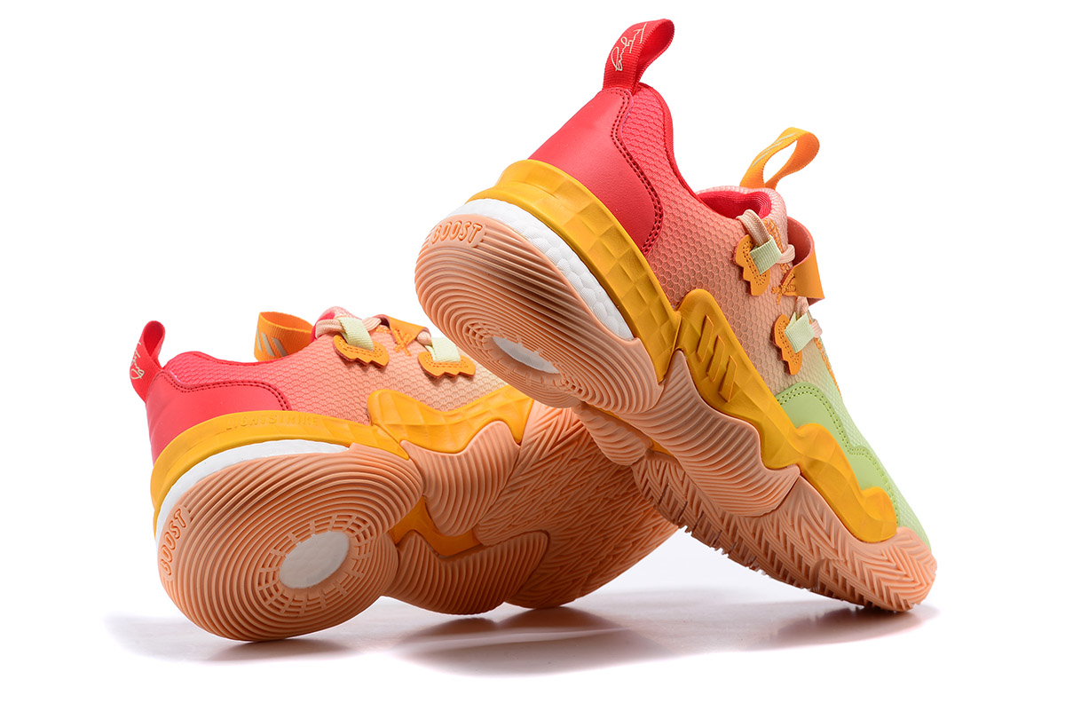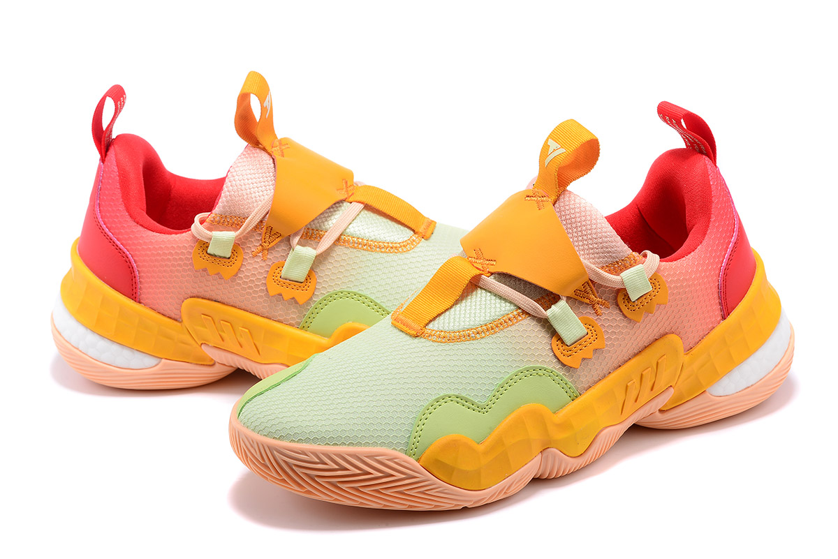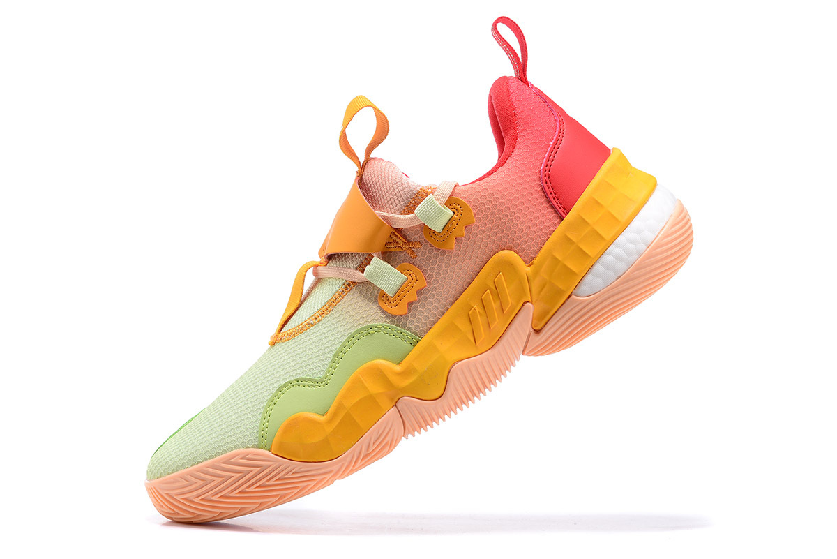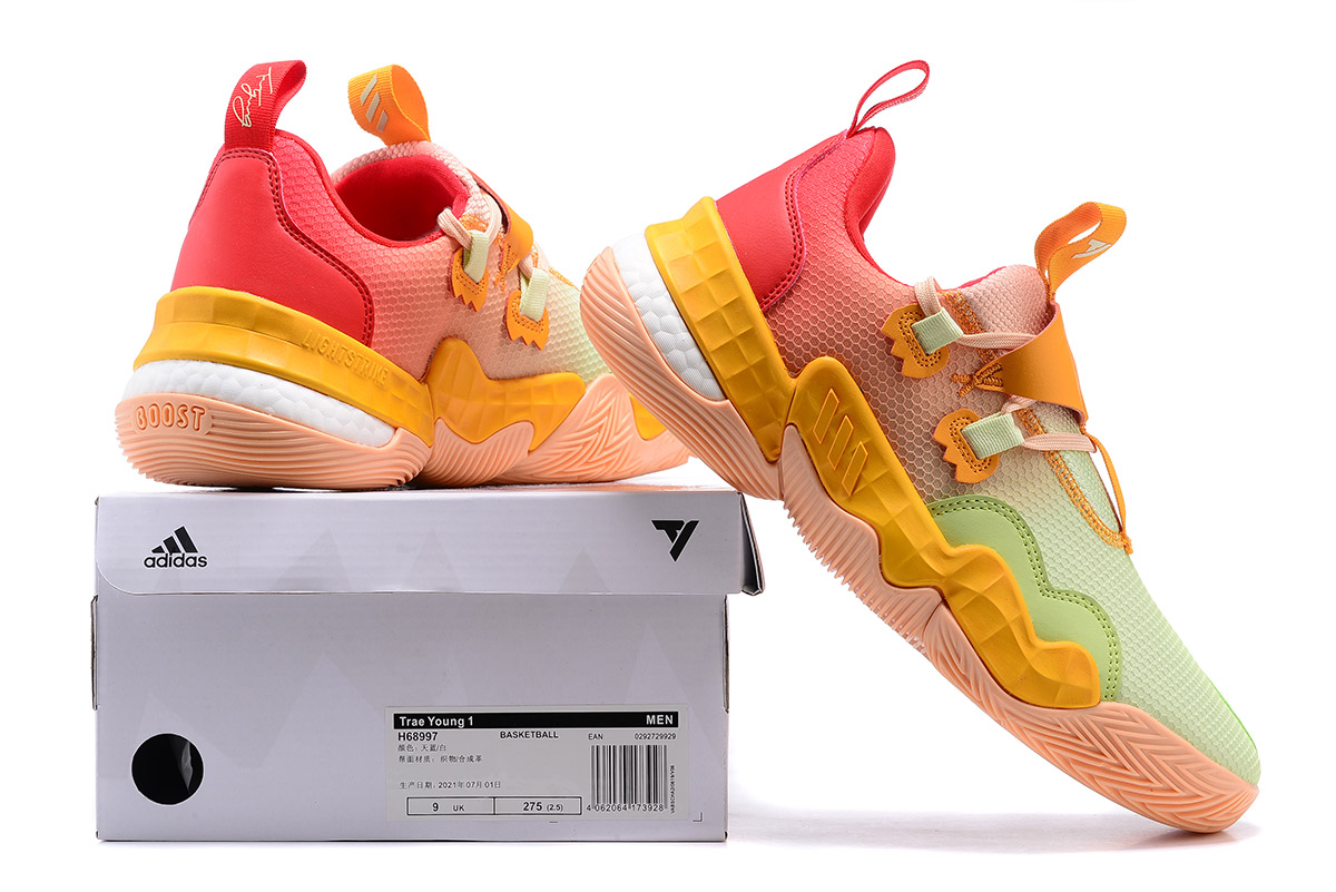 This offering of the adidas Trae Young 1 comes dressed in vibrant citrus color tones featuring a gradient mesh upper with leather overlays. White Boost exposed cushioning atop a Peach-colored rubber outsole completes the design.