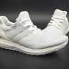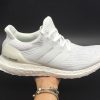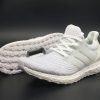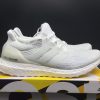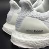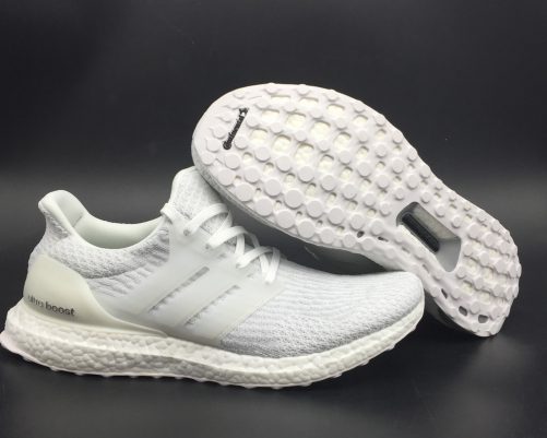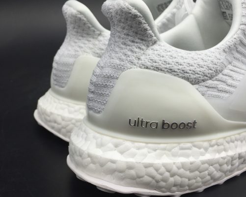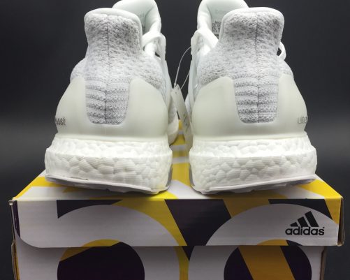 Dressed in an all-White color scheme. This adidas Ultra Boost features a thicker Primeknit woven material covering the entire upper. Also added to the shoe’s upper are minor Grey tones with a milky semi-translucent support cage overlay. Completing the look is its traditional White Boost midsole and matching rubber outsole.
