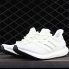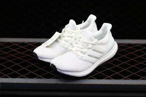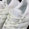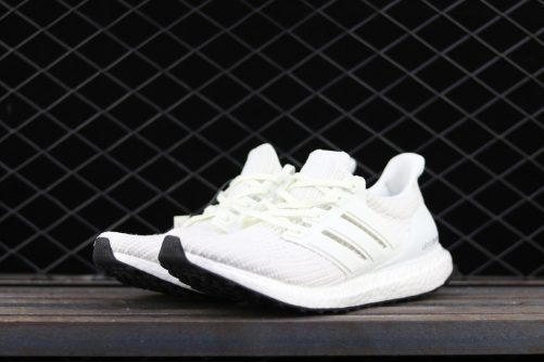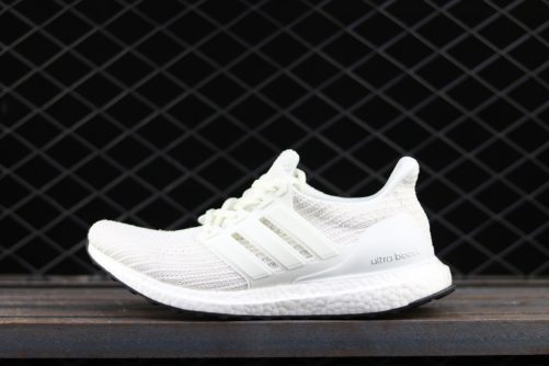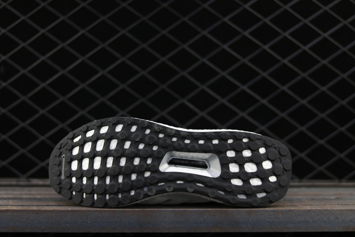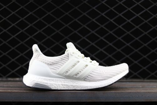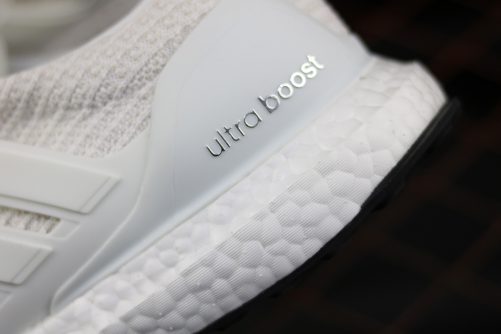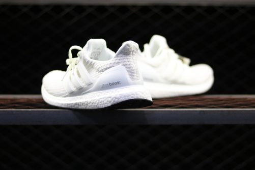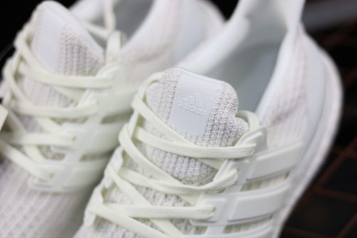 What you will notice is this adidas Ultra Boost is a mix between the 1.0 and 3.0. Like the previous release, the 4.0 features Primeknit across the uppers which resembles that of the Ultra Boost 3.0. The cage has been replaced from the semi translucent tint back to the original solid color which was seen on the Ultra Boost 1.0. While dressed in predominate White, Silver is seen on the Ultra Boost branding that lands on the heel counter. Completing the look is a Black outsole.