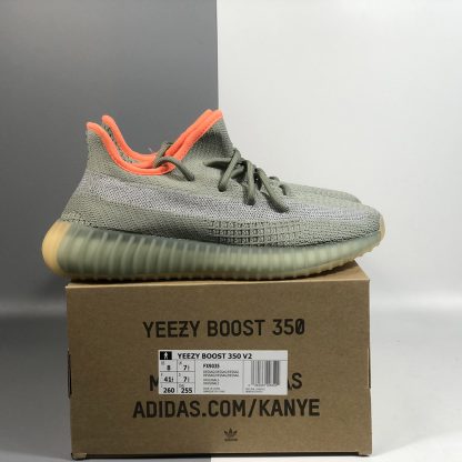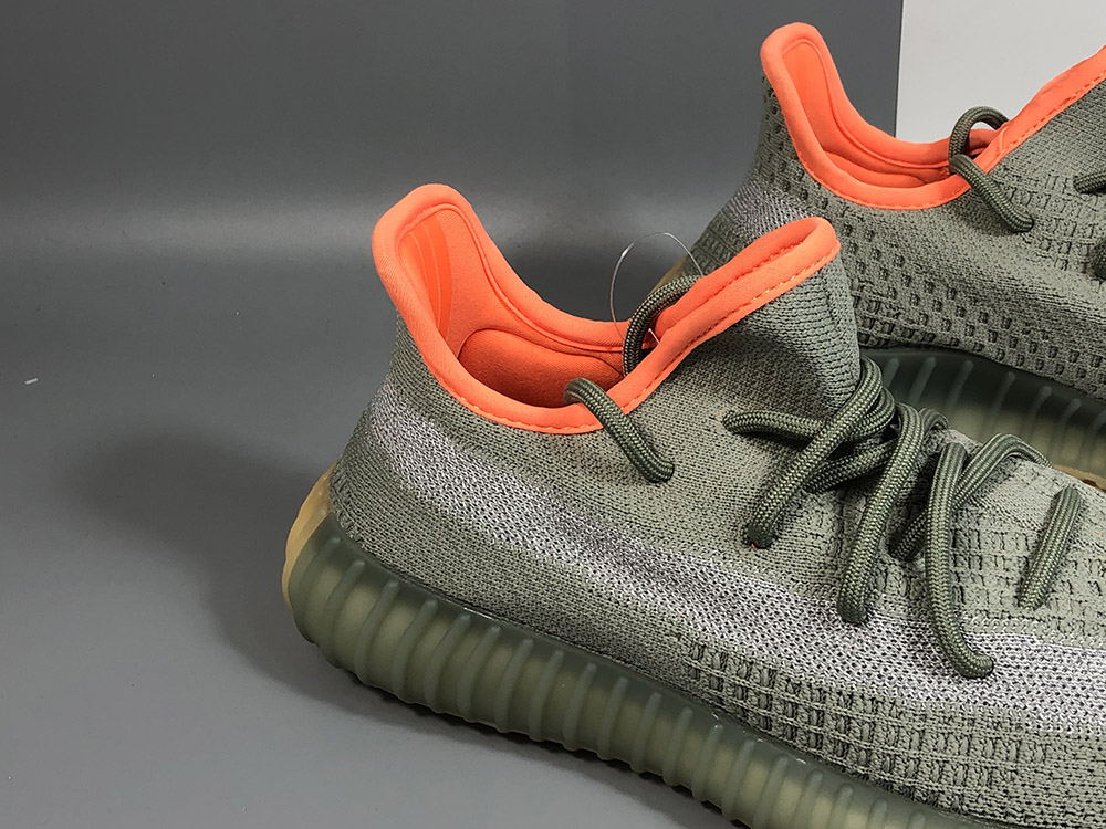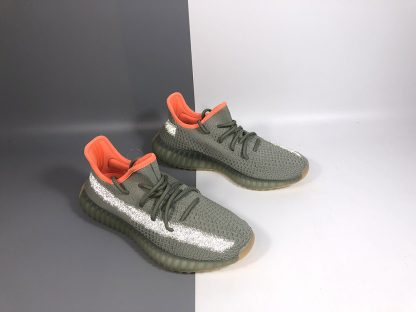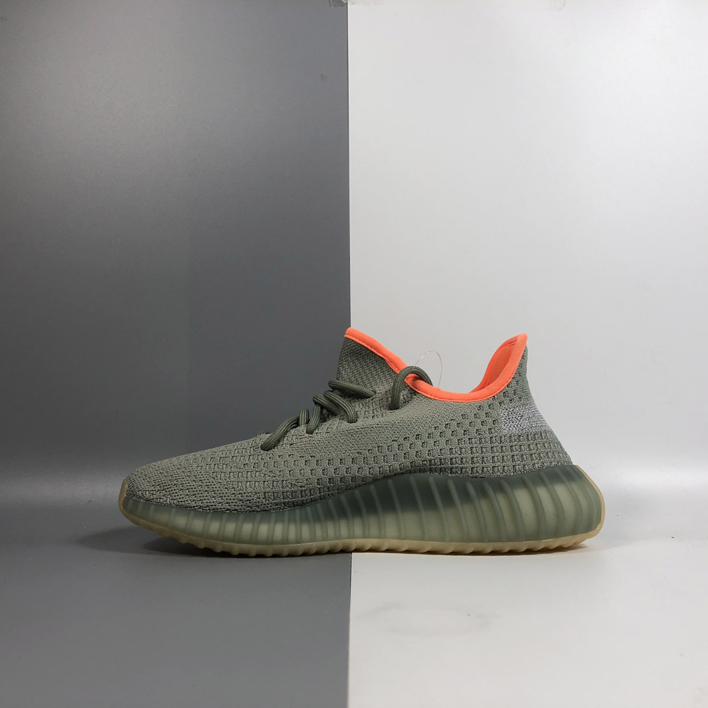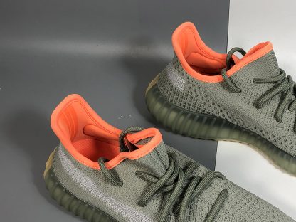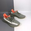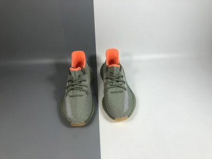 This offering of the Yeezy Boost 350 V2 features a Sage Green Primeknit upper with Vibrant Orange covering the sockliner atop a Gum-colored rubber outsole. Highlighting the shoe is its reflective stripe on the sides and heels.