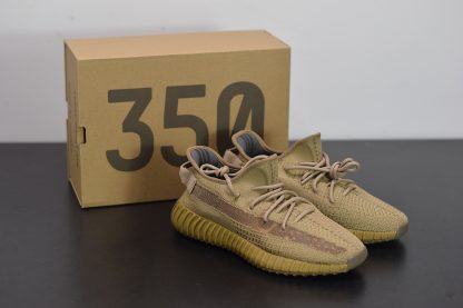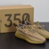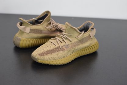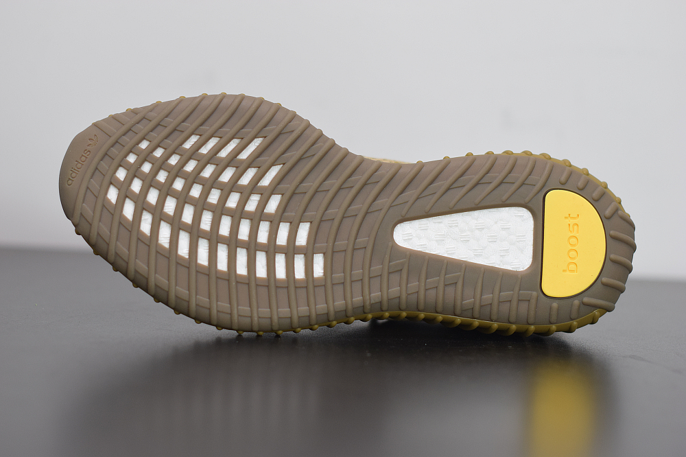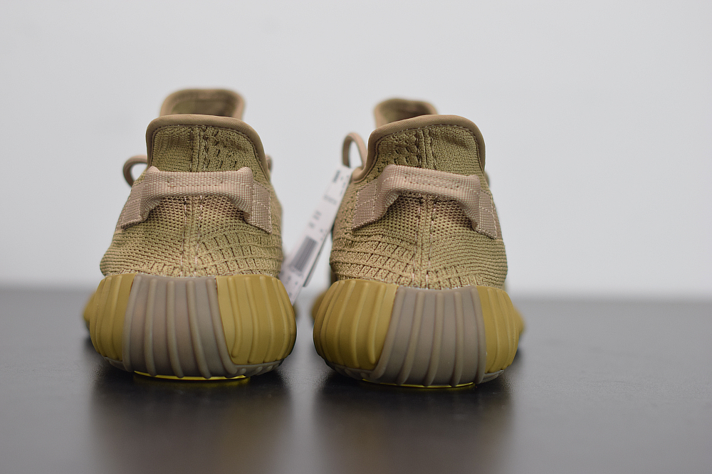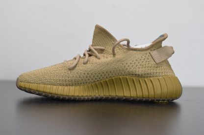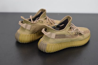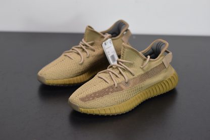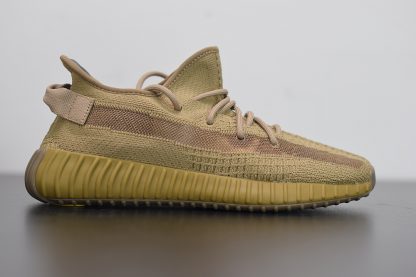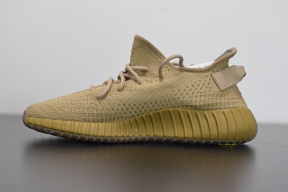 This offering of the adidas Yeezy Boost 350 V2 features a Tan Primeknit upper with a darker shade of Tan on the lateral stripe. A Khaki hue is used on the back heel tab and laces completed with a Gum rubber outsole and Sunny Yellow heel pod.