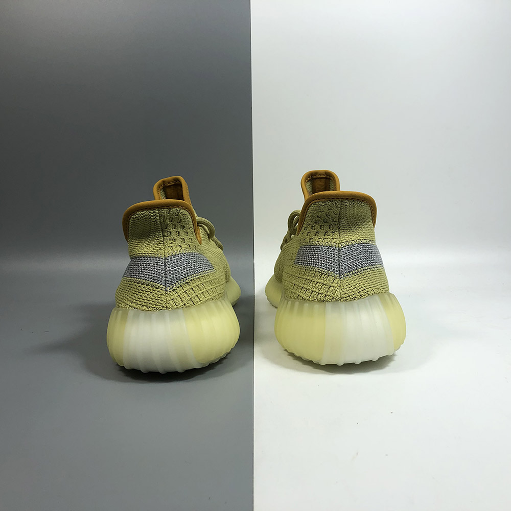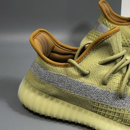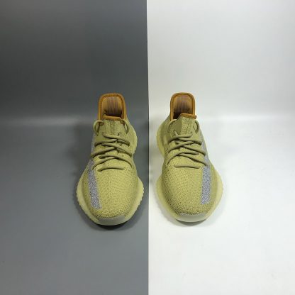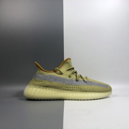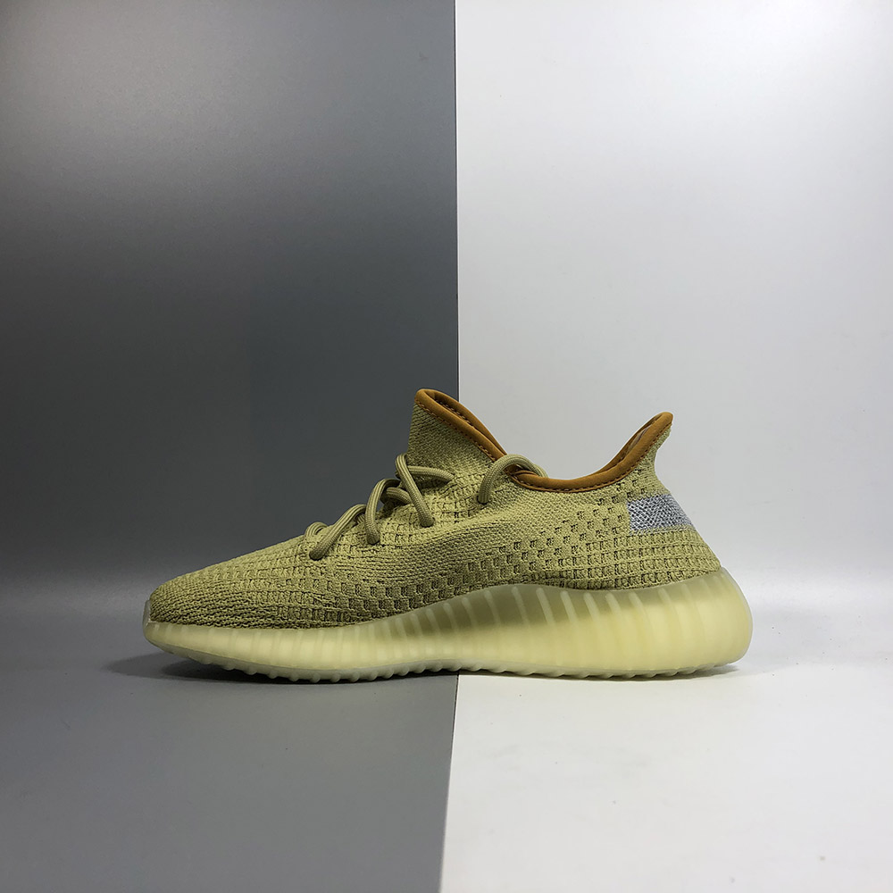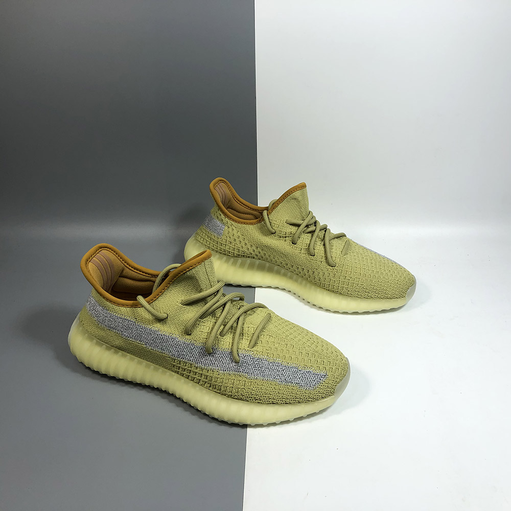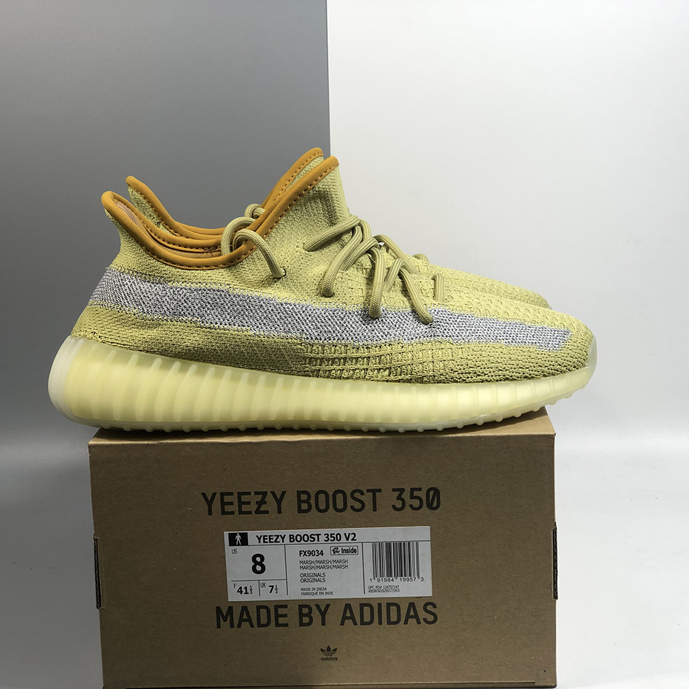 This offering of the adidas Yeezy Boost 350 V2 comes dressed in a Marsh color blocking. It features a Bright Yellow Primeknit upper paired with a Brown sock liner atop a Yellow Boost midsole and translucent outsole.