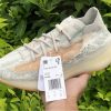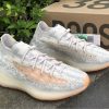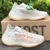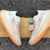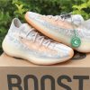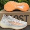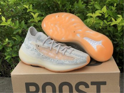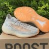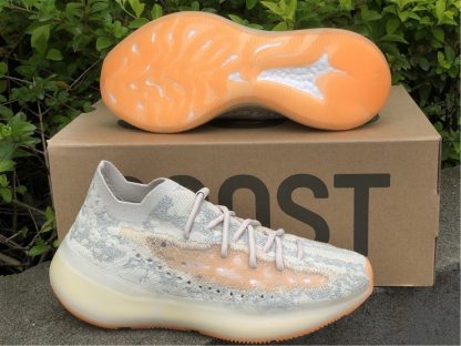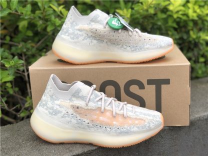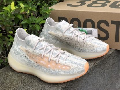 This offering of the adidas Yeezy Boost 380 features a Grey Primeknit upper with a Creamy White pattern overlay giving off a similar design as the “Calcite Glow” Yeezy Boost 380. A Sandy, Light Brown perforated stripe on the sides atop a Creamy Boost midsole and Gum outsole completes the design.