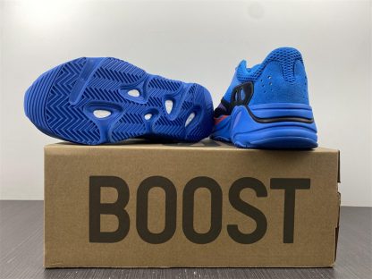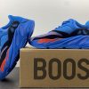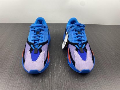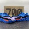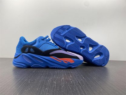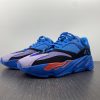 This new Hi-Res Blue makeup of the adidas Yeezy Boost 700 comes constructed in a mix of mesh, leather, and suede. It starts off with a predominantly Blue upper that is then paired up with Black suede overlays, Purple tones on the toe area and a Blue rubber sole with hits of Orange on the midsole.