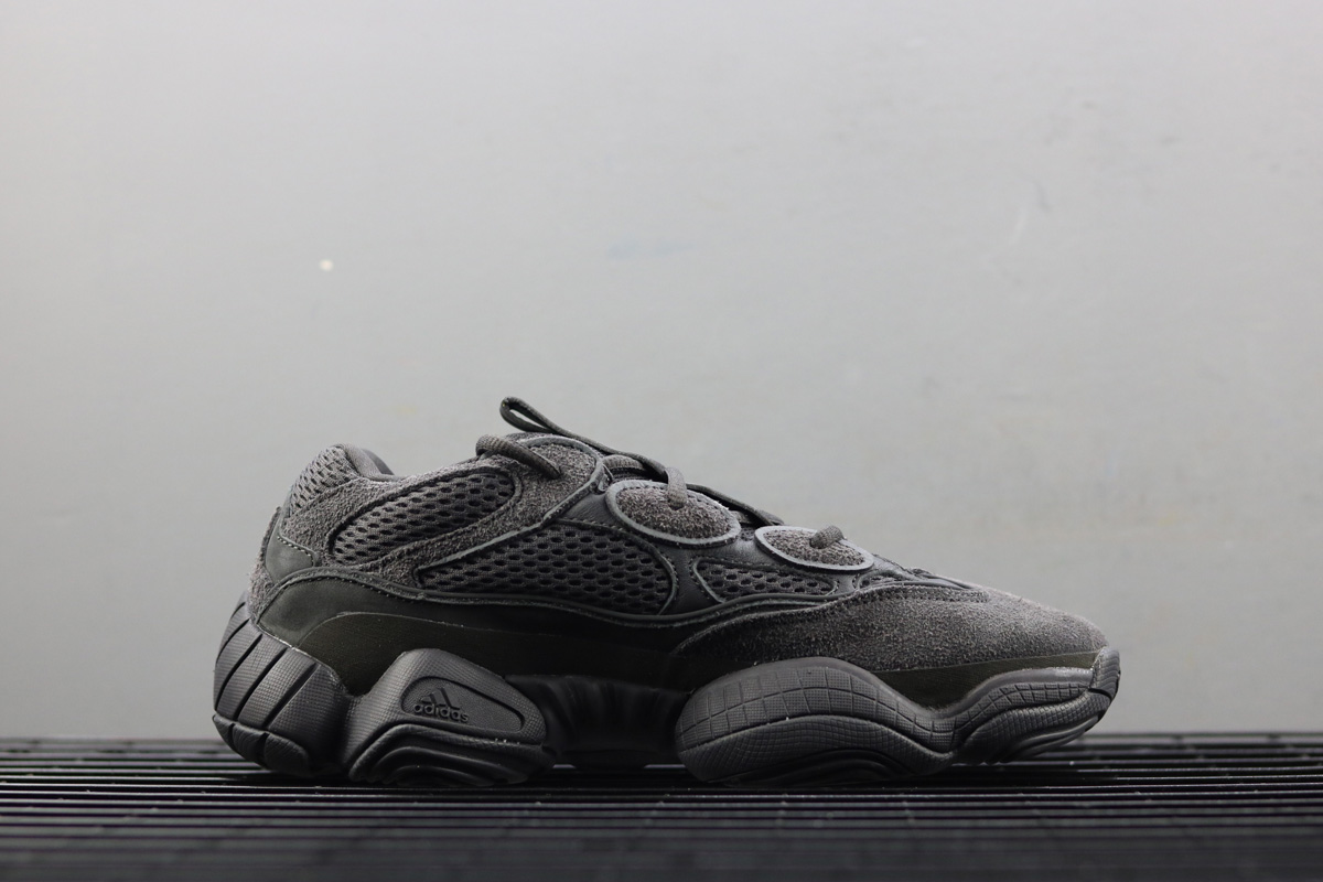 This adidas Yeezy Desert Rat 500 features a ‘Triple Black’ theme while dressed in Utility Black. Constructed with a mixture of mesh, leather and suede, the look is completed with it’s traditional thick midsole.