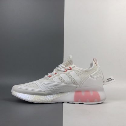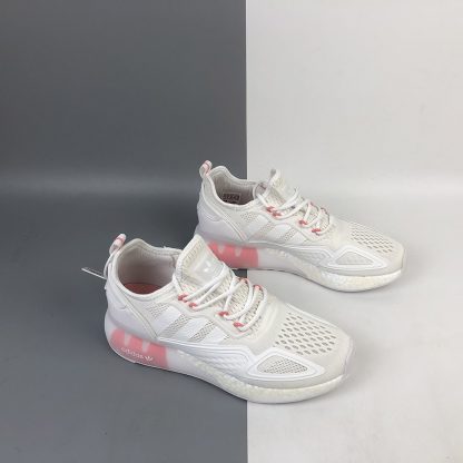 Any sneaker fashionista who has dominance over their excellence will recognise the charms of ZX 2K Boost right away. On top of that, the extremely adorable and fancy colour palette is impossible to ignore. Taking the fuel from classic ‘80s technical runners, this particular series is becoming the kick-next-door. A thick slab of Boost midsole sits underfoot, making sure all your steps are cushioned and safe. Similarly, the high-quality stretchy mesh walls and synthetic overlays wrap your feet in such a comfortable unit that you will never want to take it off! You can spot some iridescent detailing along with the baby pink heel and lace-loops. Finally, with the refreshing White Pink appearance, this silo stays miles away from the Black Shock Pink version.