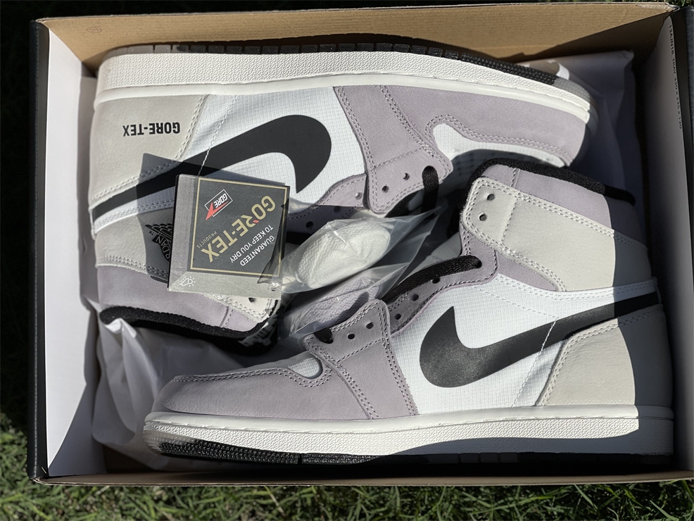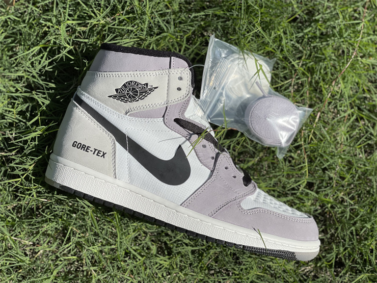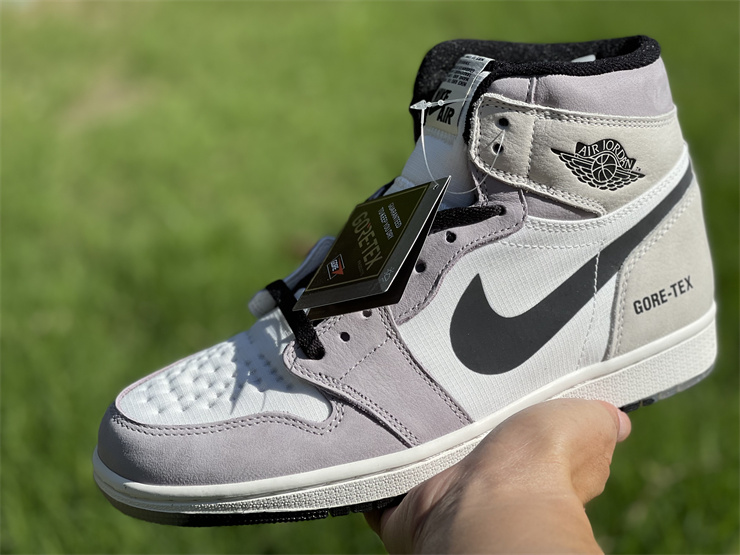 Shaped up with a structure of a regular Air Jordan 1, the silhouette is equipped with “Sail” ripstop material outfitting the toe boxes, quarter panels and tongues featuring hybrid branding labels while the mudguards, eyestays and ankle collar adds contrast with nubuck leather in a “College Grey” hue. The “Light Bone” color shades in the collar flaps and heels with “GORE-TEX” text sealed on the laterals under a matching black Swoosh. A white midsole sits atop a black split rubber and translucent outsole to finish off the look.