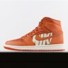 Generating a solid amount of hype over the past few weeks, the Jordan 1 High OG Vintage Coral is dressed in bright orange leather and features large, striking branded hits on the lateral and medial quarter panels. Utilising a mix of large Nike lettering and a blown-up repeating text graphic, these graphics are a certified attention grabber as the AJ1 is usually devoid of such bold branding.