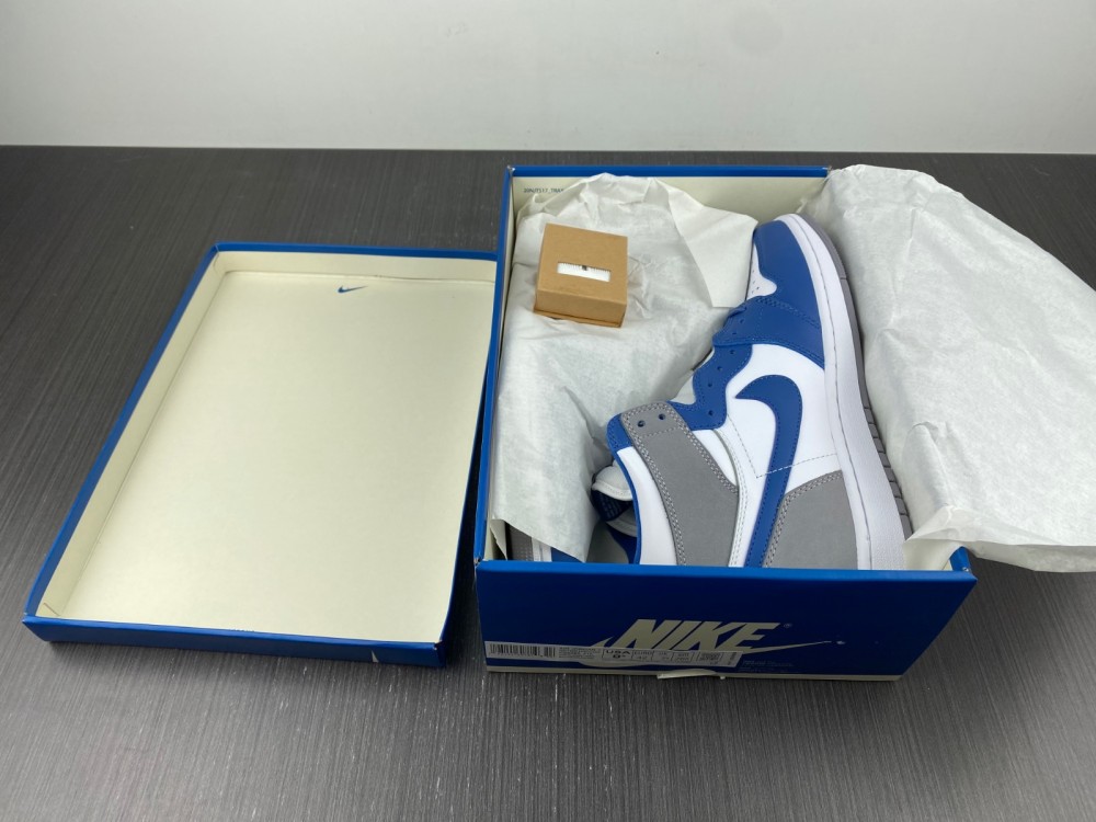 This offering of the Air Jordan 1 comes in a similar color blocking to the OG “True Blue” Air Jordan 3. It features a White leather base with Grey and Blue overlays atop a White midsole and Grey rubber outsole. The release will be available in full-family sizing.