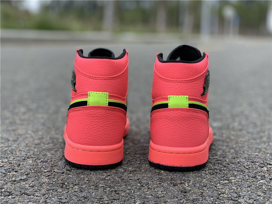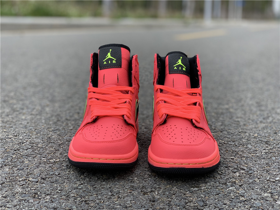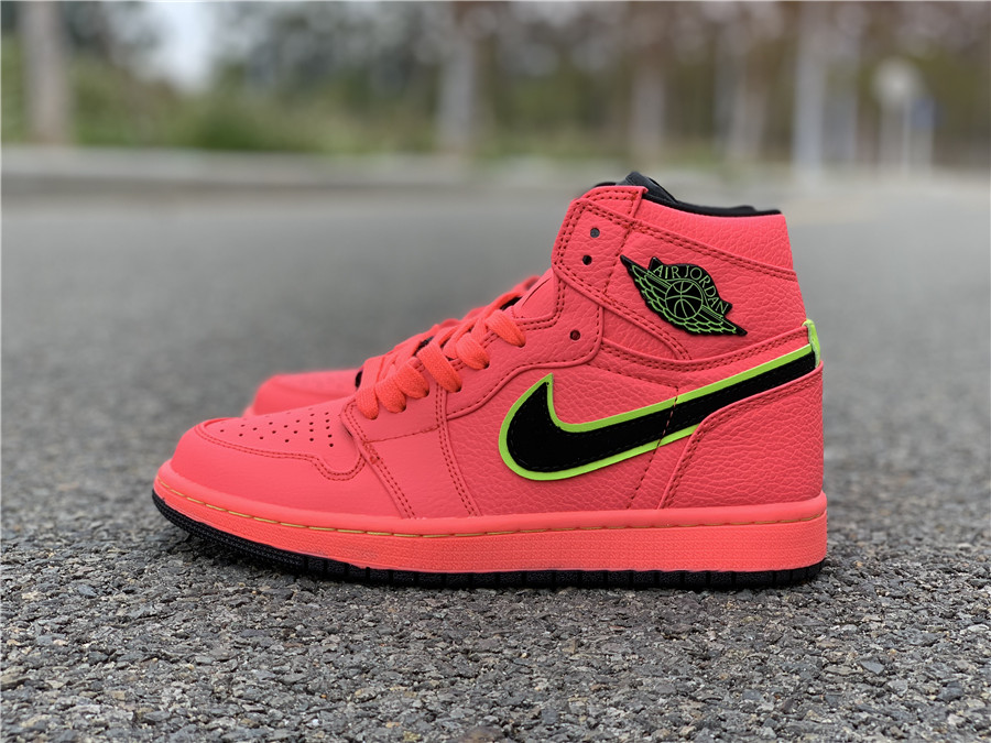 This Air Jordan 1 features a Hot Punch tumbled leather upper paired with Black detailing throughout. Adding to its vibrant aesthetic are Volt accents on the outlined Swoosh logo, Jumpman tongue label, heel, and stitching wrapping around the midsole.