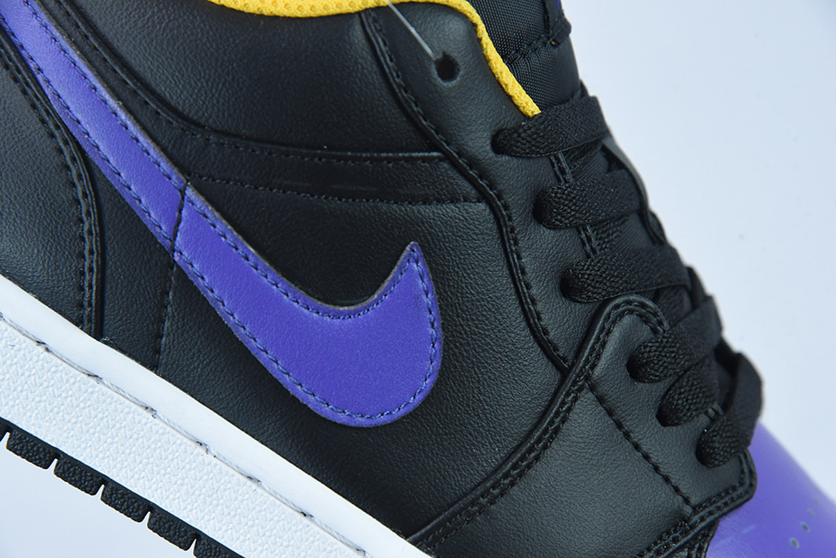 Dressed in a Black, Dark Concord, and Taxi color scheme. This offering of the low-top Air Jordan 1 features a full leather build with mesh tongues and lining. A White midsole atop a Black rubber outsole completes the design.