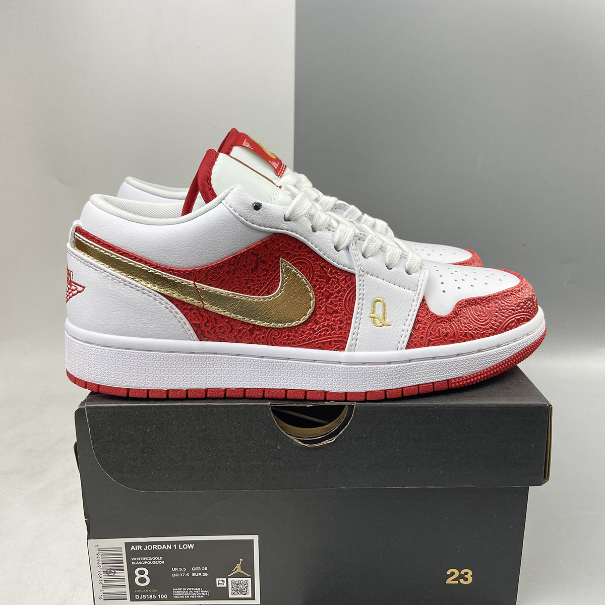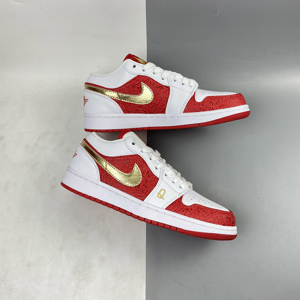 Air Jordan 1 Low “Spades” White Red Gold For Sale