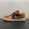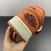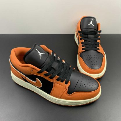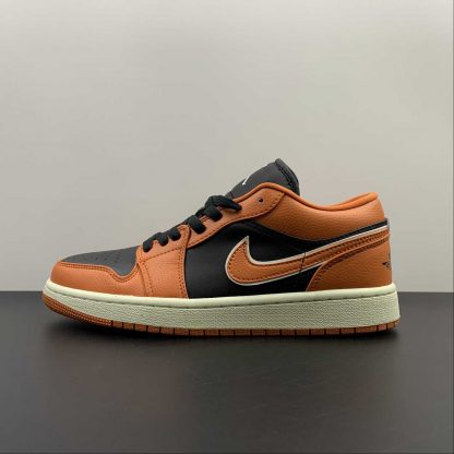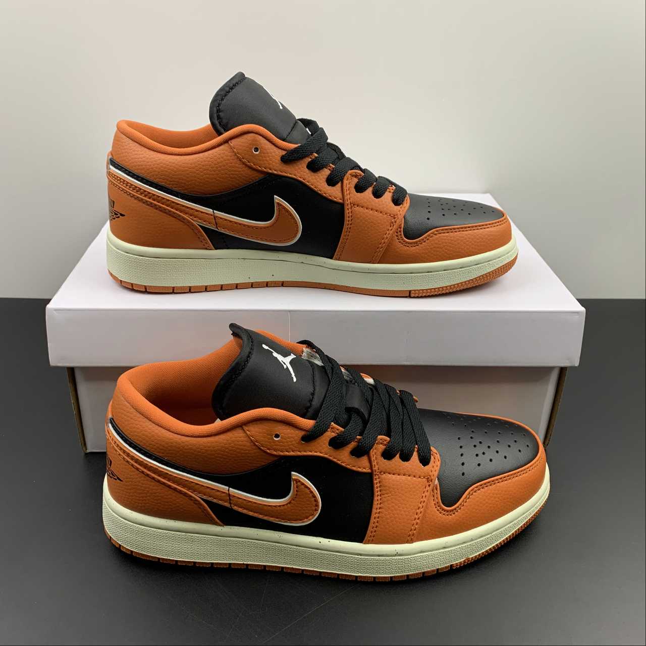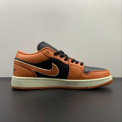 In a color scheme reminiscent of various “Shattered Backboard” editions of the Air Jordan 1, orange meets black and off-white. Utilizing jet-black leathers as its base layer, the presiding shade provides stark contrasts to the vibrant orange overlays and Swoosh that render the same textile as the soft pebble grain of a basketball. Above, the laces and tongue further proffer the pitch-dark color whereas seldom hits of white play an opposing role, outlining the midfoot Checks and tongues Jumpman insignia. Garnering strong “Shattered Backboard” ‘vibes, an aged vanilla-hued midsole sits atop a clad “Sport Spice” tread underfoot with the heels winged insignia concluding the design elements in the previously established black tone.