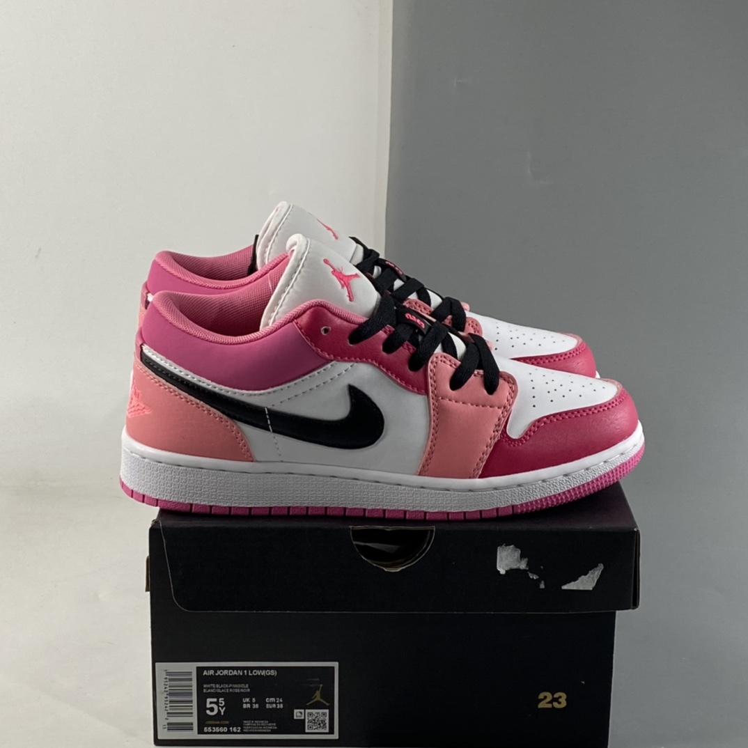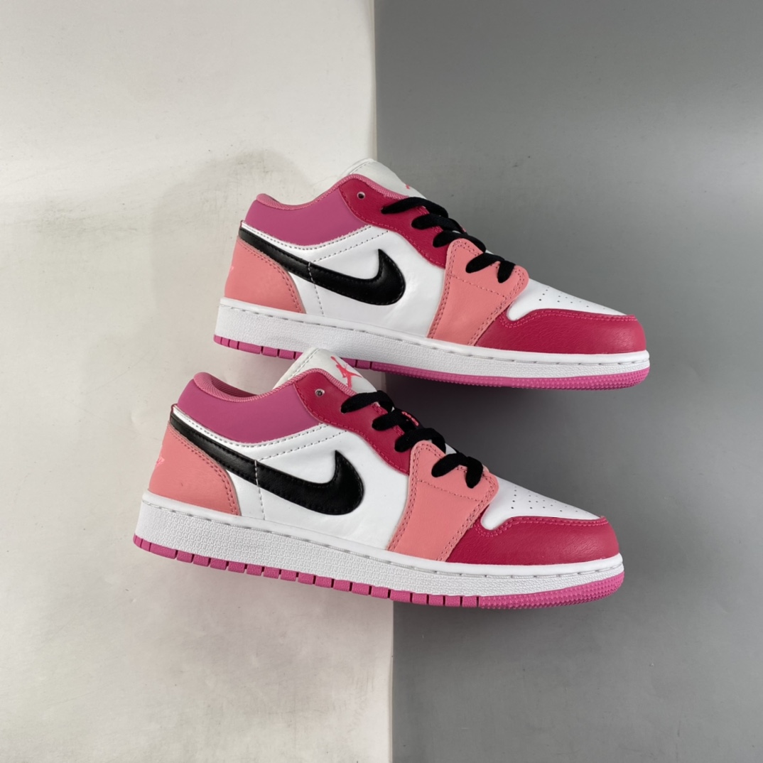 There’s a new grade school colorway of the Air Jordan 1 Low dropping soon which which gets covered in shades of pink and red for a Valentine’s Day-inspired look. Covered in a full smooth leather construction all throughout the upper, this Air Jordan 1 Low starts off with white paneling on the toes and side panels while pink and red detailing is seen all throughout the overlays. Additional details include white nylon tongues, black placed on the laces and Swooshes, and pink embroidery on the Jumpman on the tongues and the Wings logo on the heels. Down below we see a white rubber midsole and pink rubber outsole to cap things off on this grade school