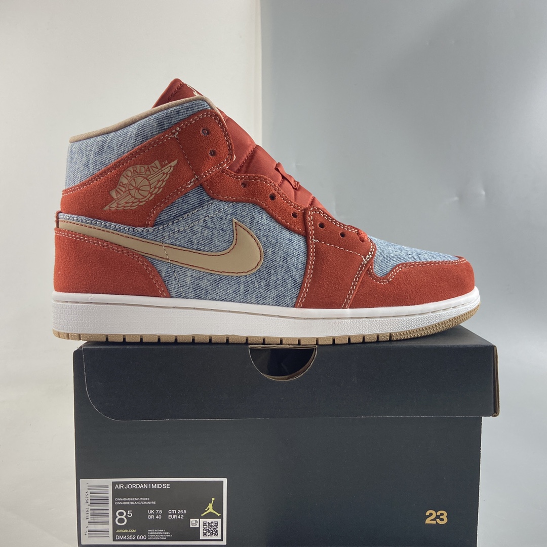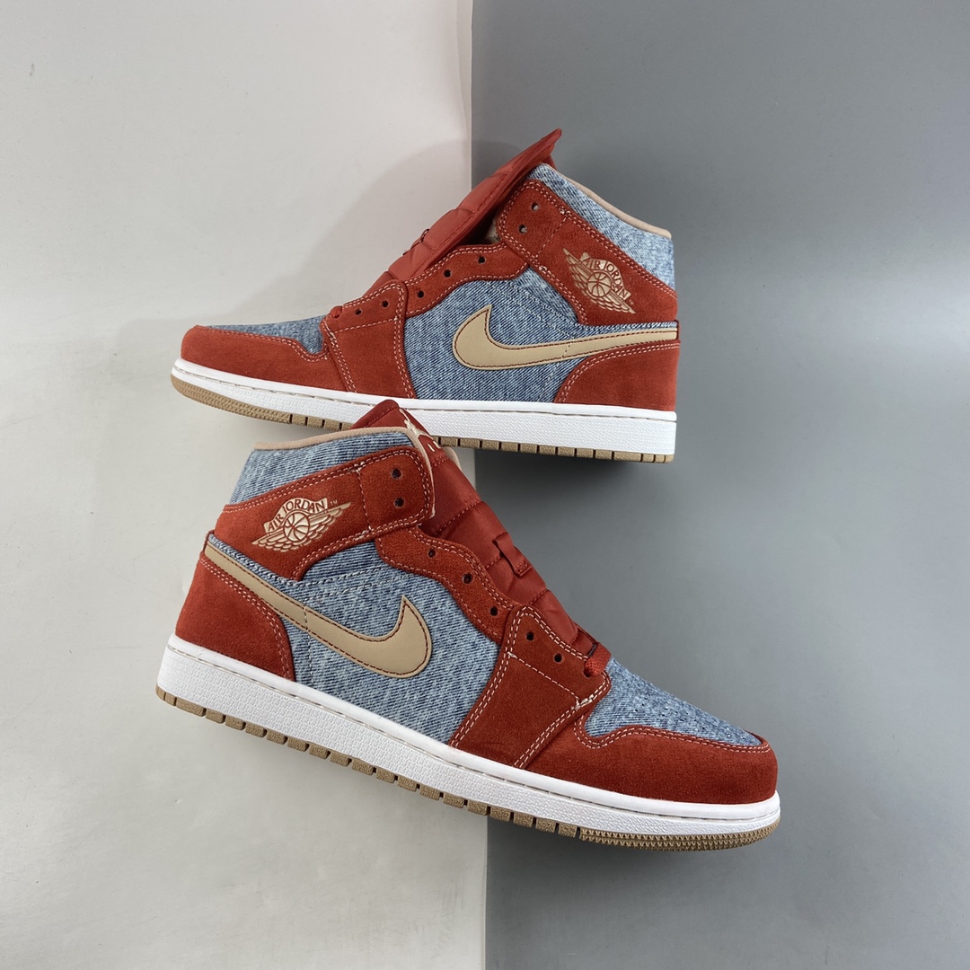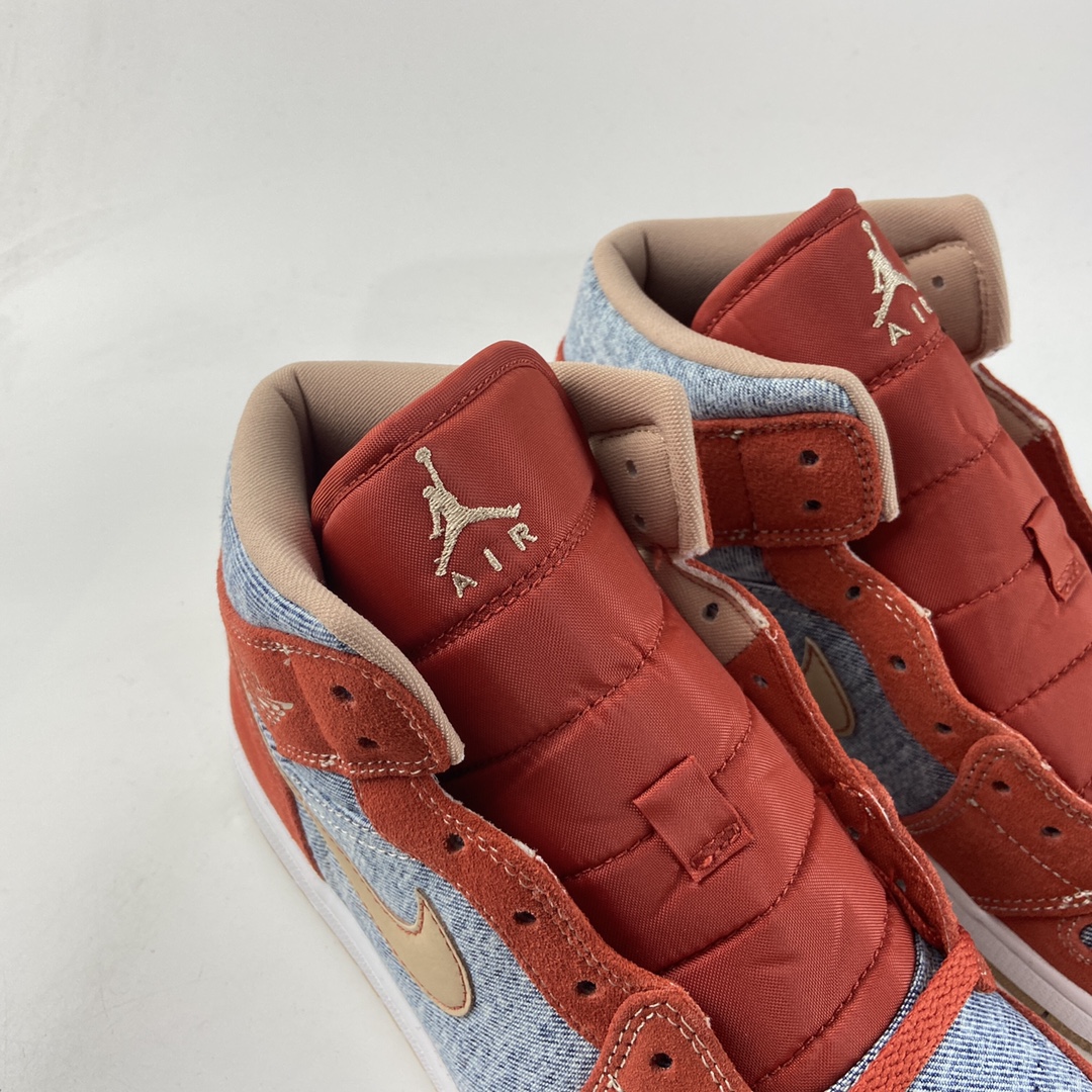 Blue denim that provides the shoe with its moniker is present on toeboxes, quarters and collars alike. It’s accented by red suede mudguards, eyestays, heels and collar flaps. Tan is introduced into the mix on Swooshes, the collar’s ball-and-wings logo, contrast stitching and trim for a potential nod to the leather tags often found on the rear of jeans. A tan Jumpman logo is embroidered on the red nylon tongue, and down below the look is rounded off by white midsoles that sit atop classic gum outsoles.