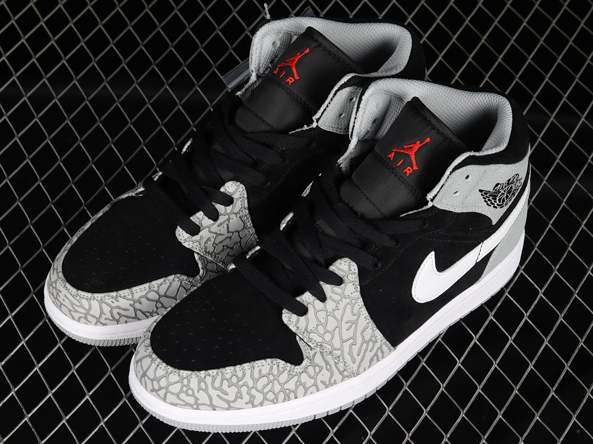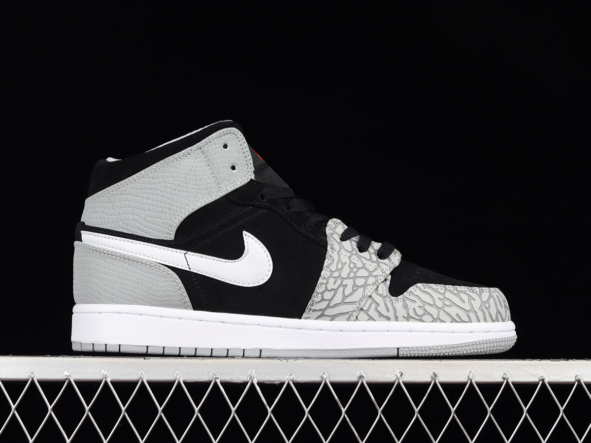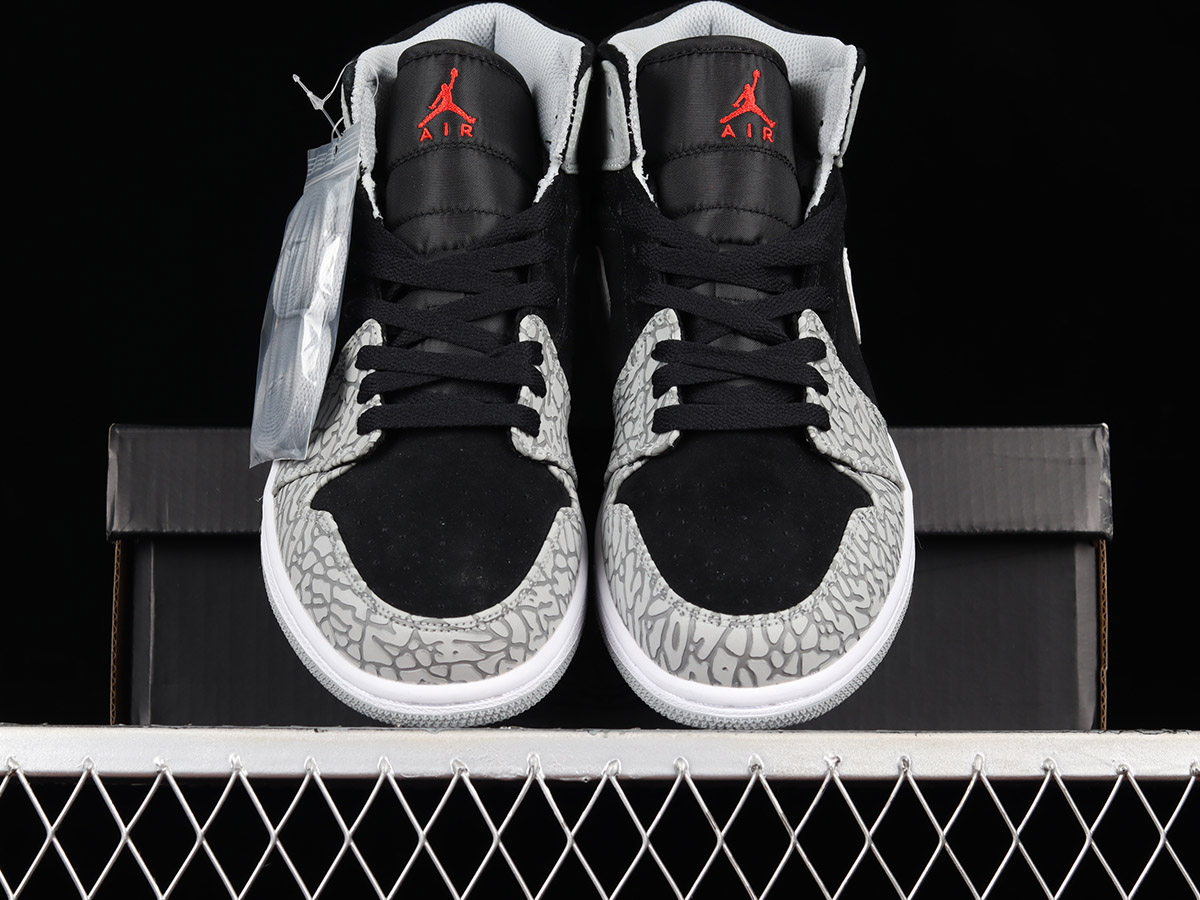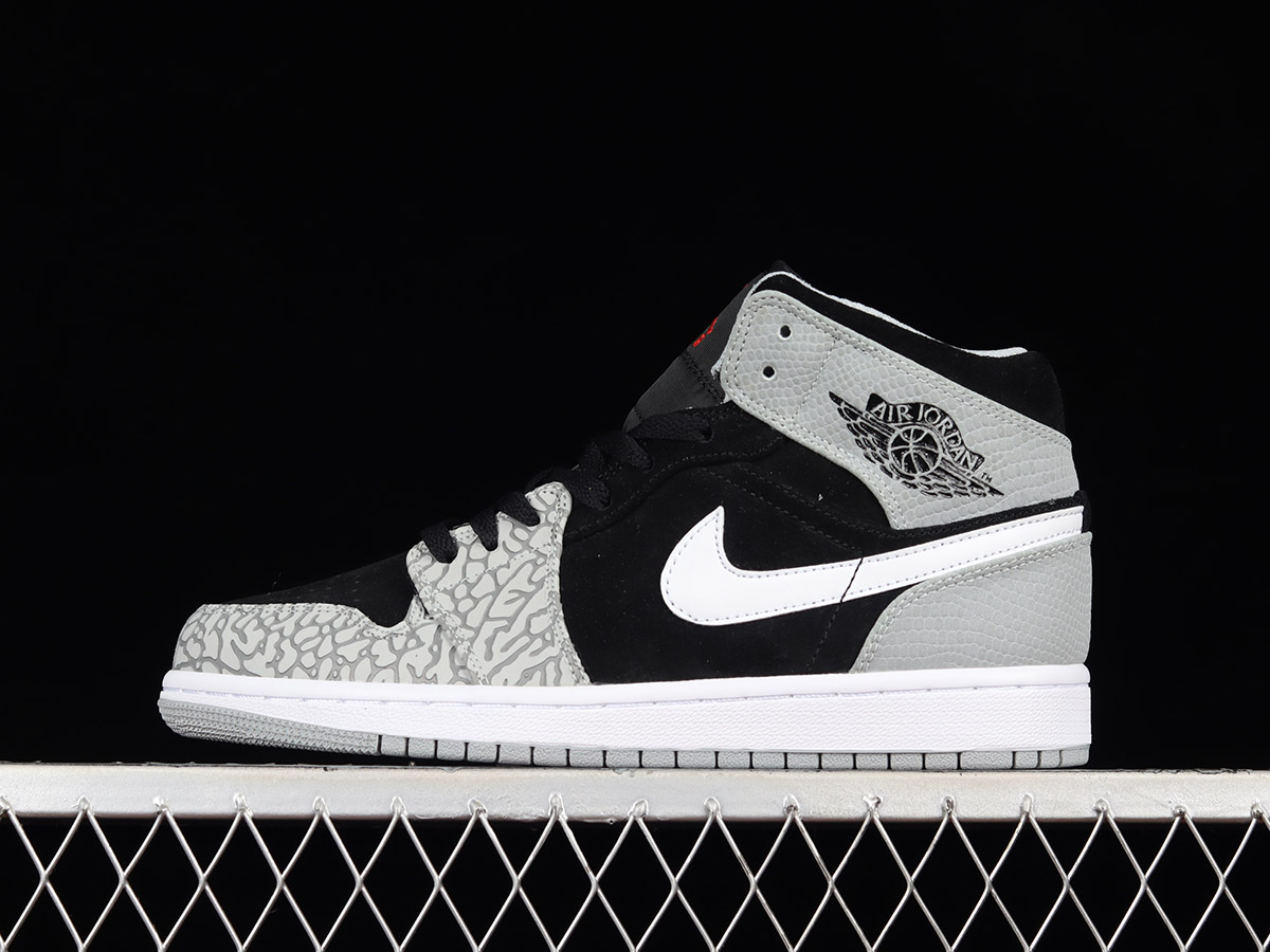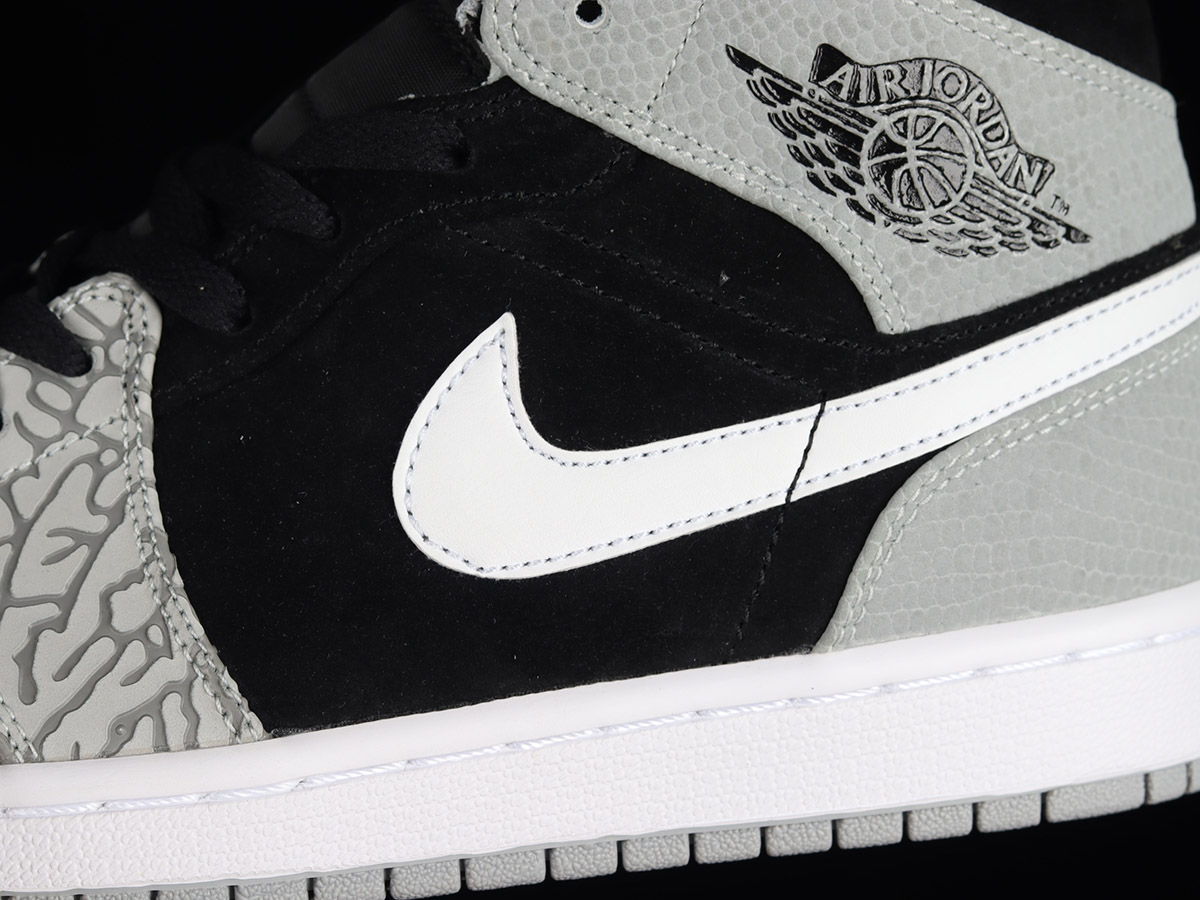 Air Jordan 1 Mid “Elephant Print” Black Grey For Sale