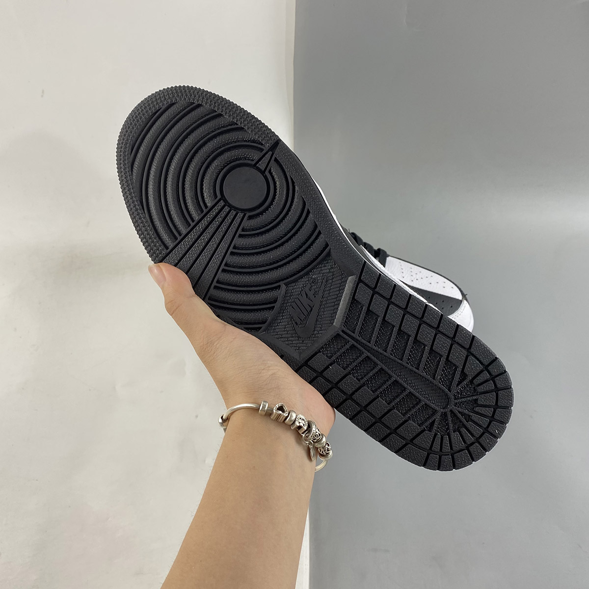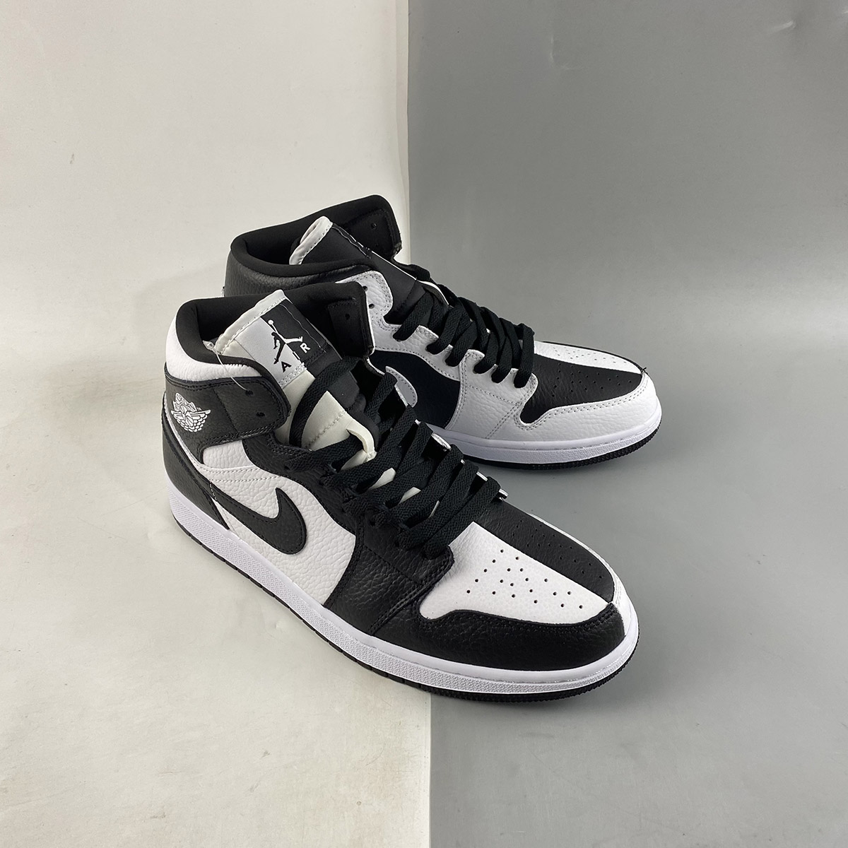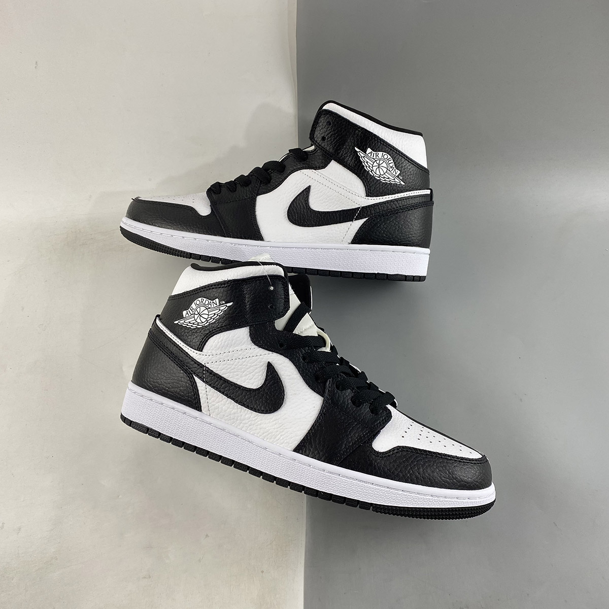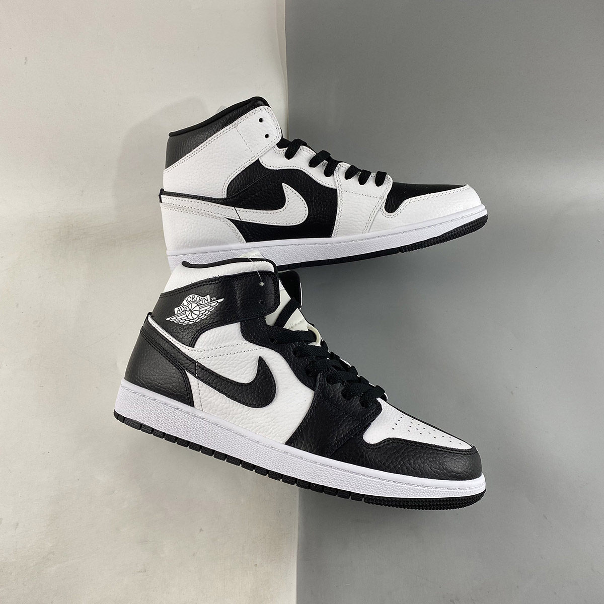 This offering of the mid-top Air Jordan 1 comes constructed in a full tumbled leather build featuring a White base with Black overlays on the lateral, and the opposite used on the medial. Split nylon tongues atop a White midsole and Black rubber outsole completes the design.