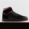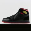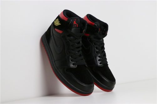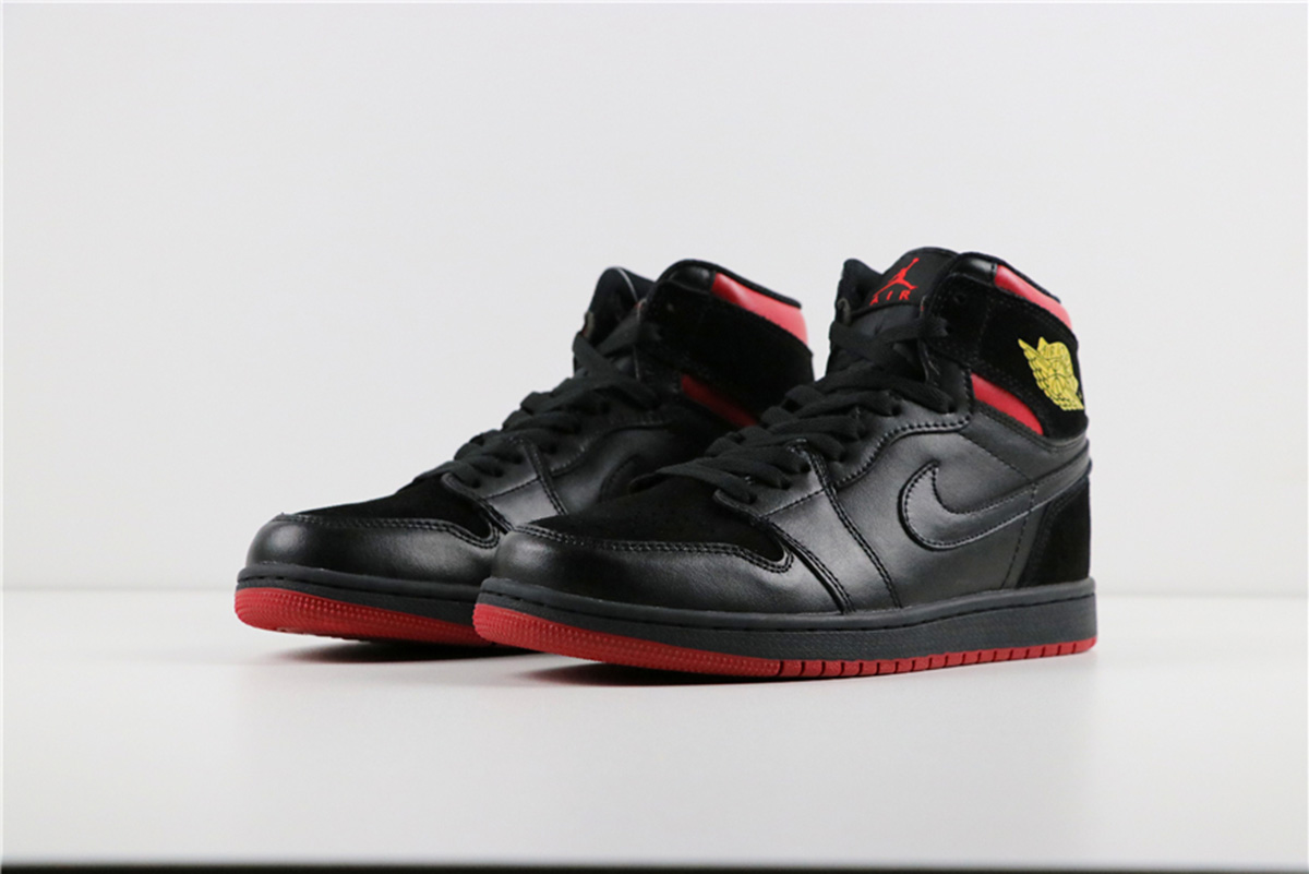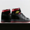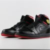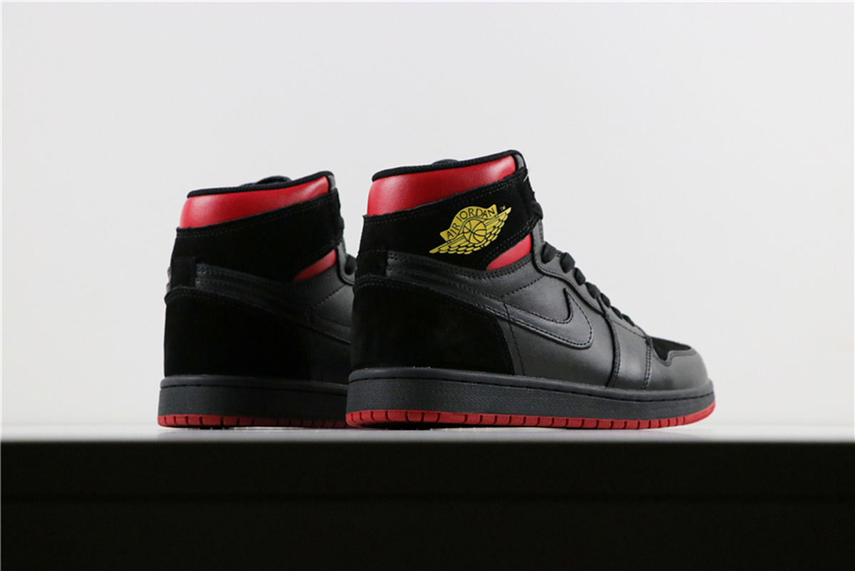 But before the big release, Jordan Brand drops an Air Jordan 1 Mid dressed in the “Last Shot” color scheme. It features a Black and Red upper with a Yellow Wings logo as a nod to the Ferrari logo on the Air Jordan 14.