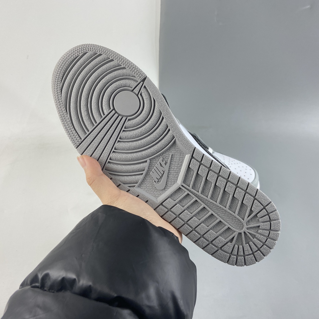 Dressed in a Light Smoke Grey, White, and Anthracite color scheme. This offering of the mid-top Air Jordan 1 comes constructed in a leather build featuring a White base with Light Smoke Grey overlays and Anthracite Swooshes, ankle collar, tongues, and liners. Contrasting stitching atop a White midsole and Grey rubber outsole completes the design.