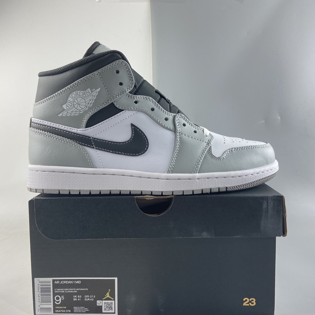 Air Jordan 1 Mid Light Smoke Grey/White-Black For Sale