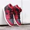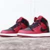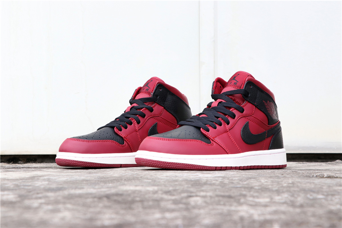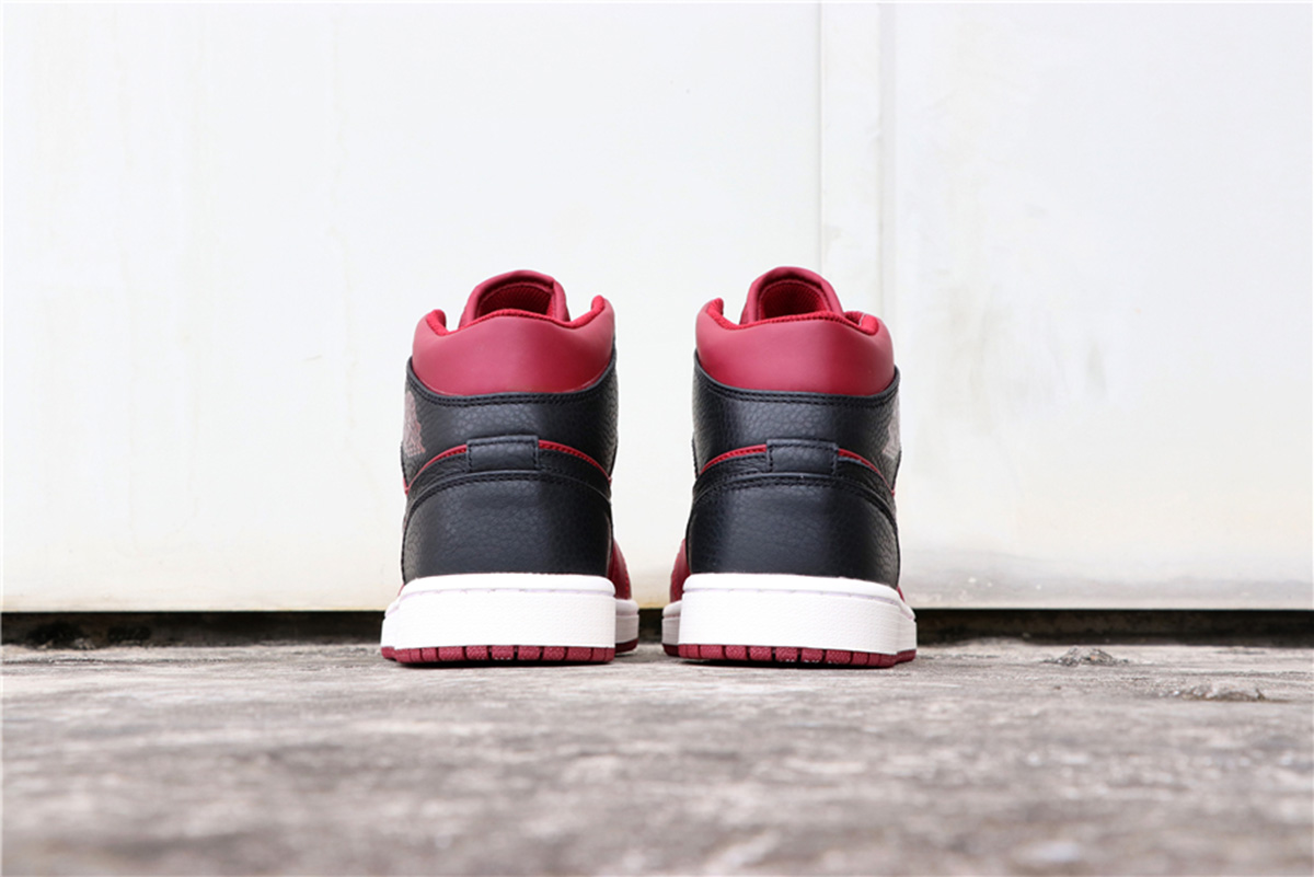 Dressed in a similar “Banned” color scheme, which reverses the uses of Red and Black. This Air Jordan 1 is highlighted with tumbled leather on the heel, Swoosh and toe, while sitting atop a White midsole for a nice added contrast.