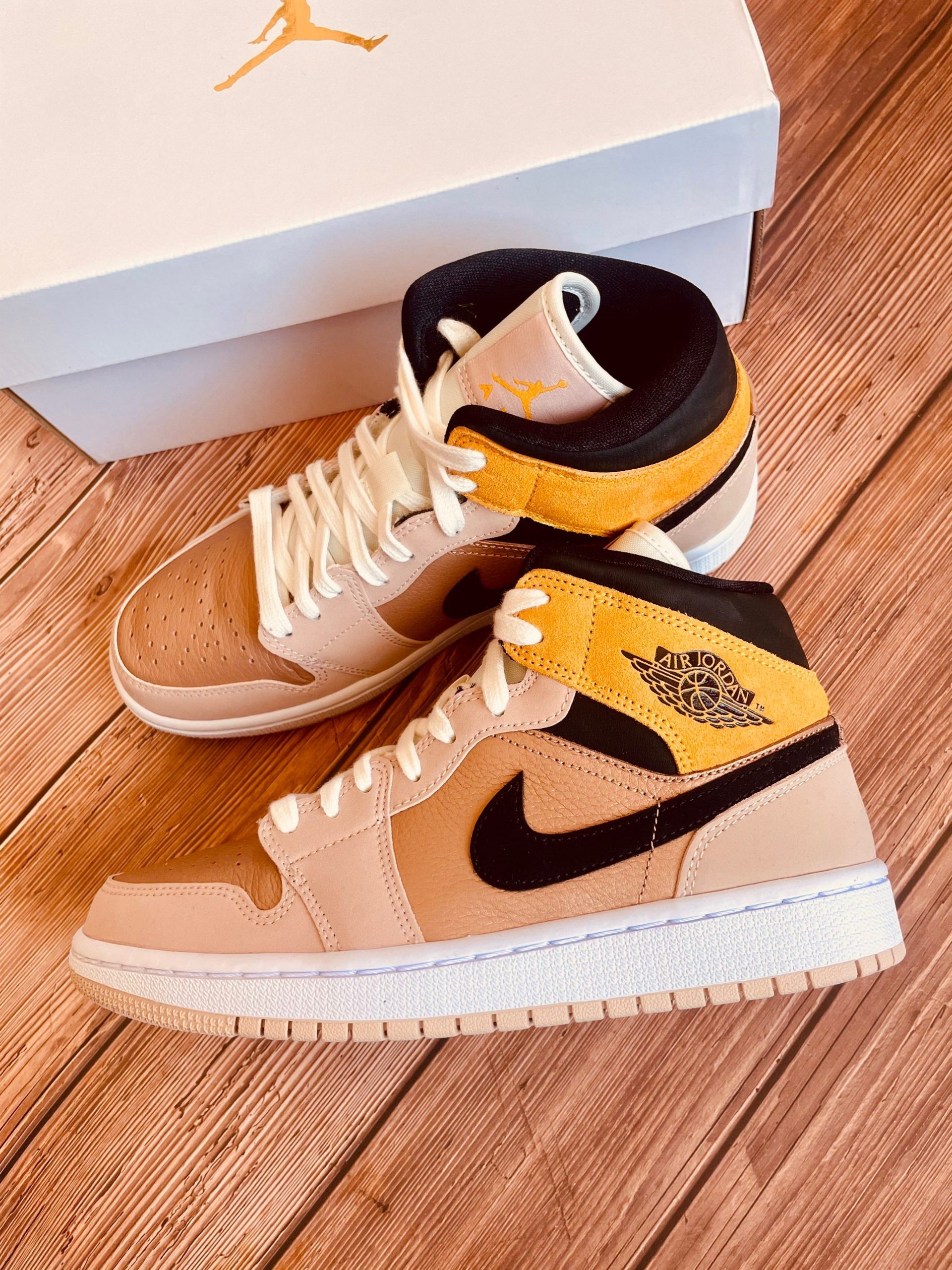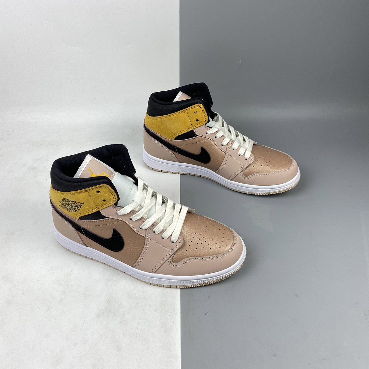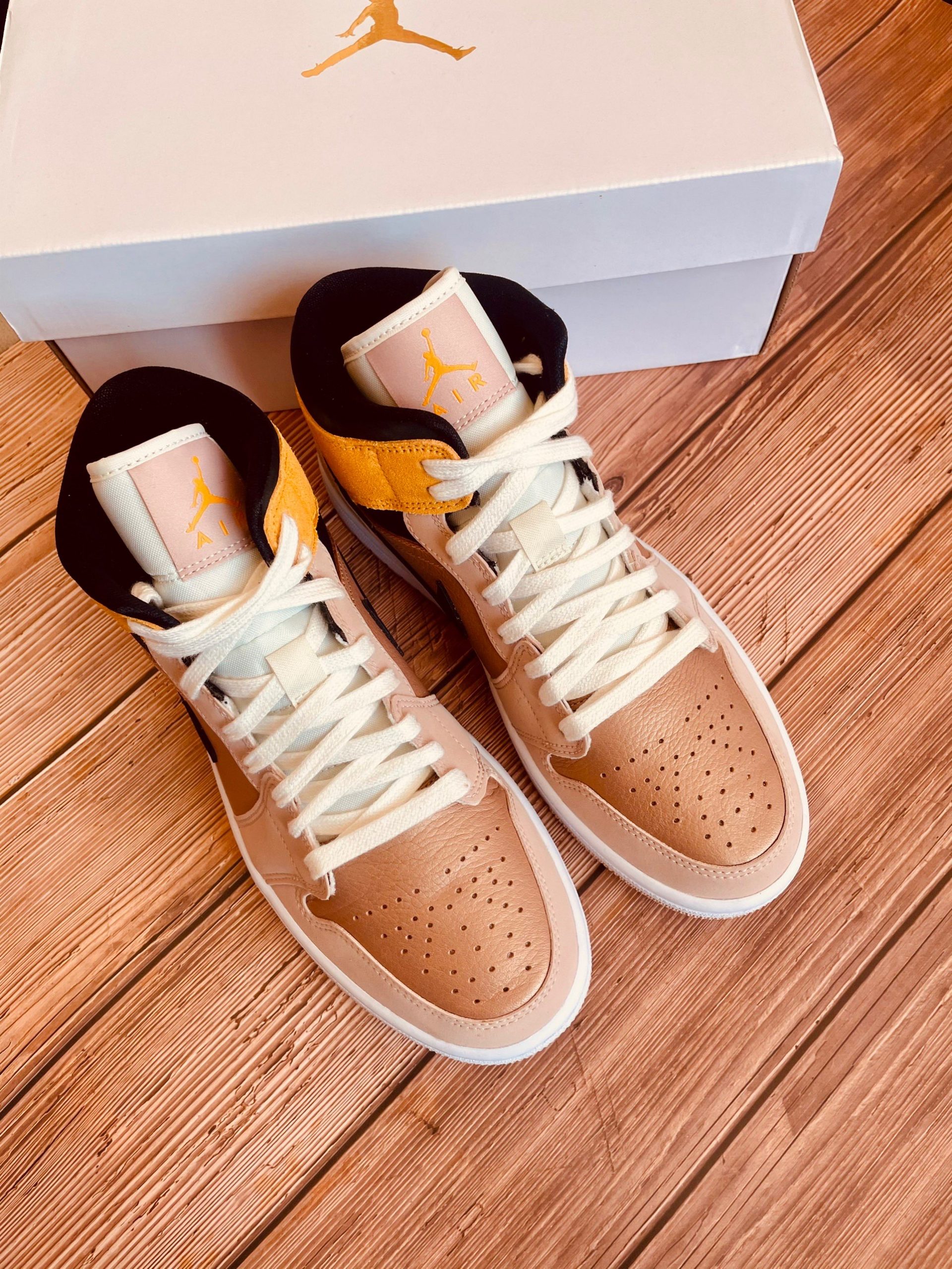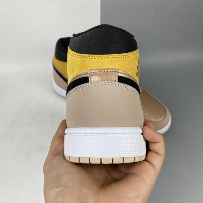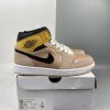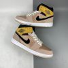 Looking closer, this mid-top iteration of the Air Jordan 1 features a Particle Beige, Black, and Metallic Red Bronze color combination. Highlighted with Red Bronze tumbled leather on the panels and toe box while Particle Beige leather adorns the eyestay, wraps the heel and toe. Following, Wheat suede covers the ankle flap while the Wings logo features Black. Speaking of Black, the shade also covers the Swoosh and ankle. The tongue and laces have an aged look, and White covers the midsole. Lastly, a Beige rubber outsole finishes the look.