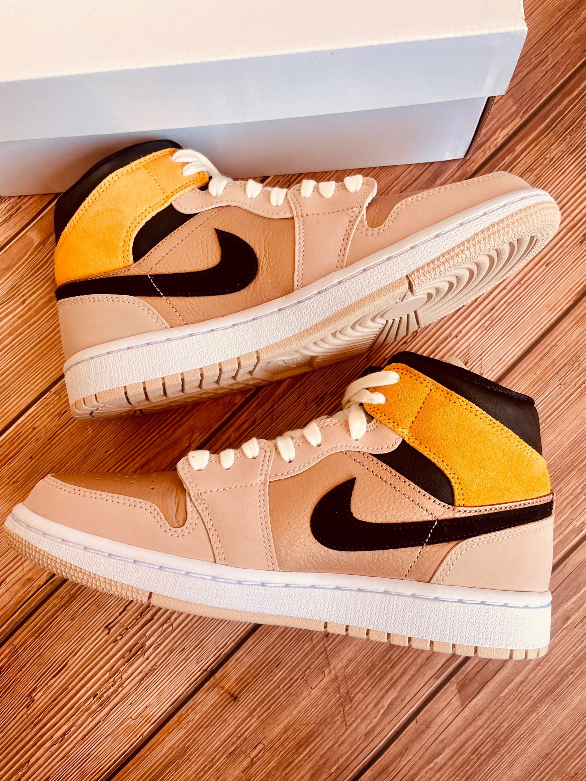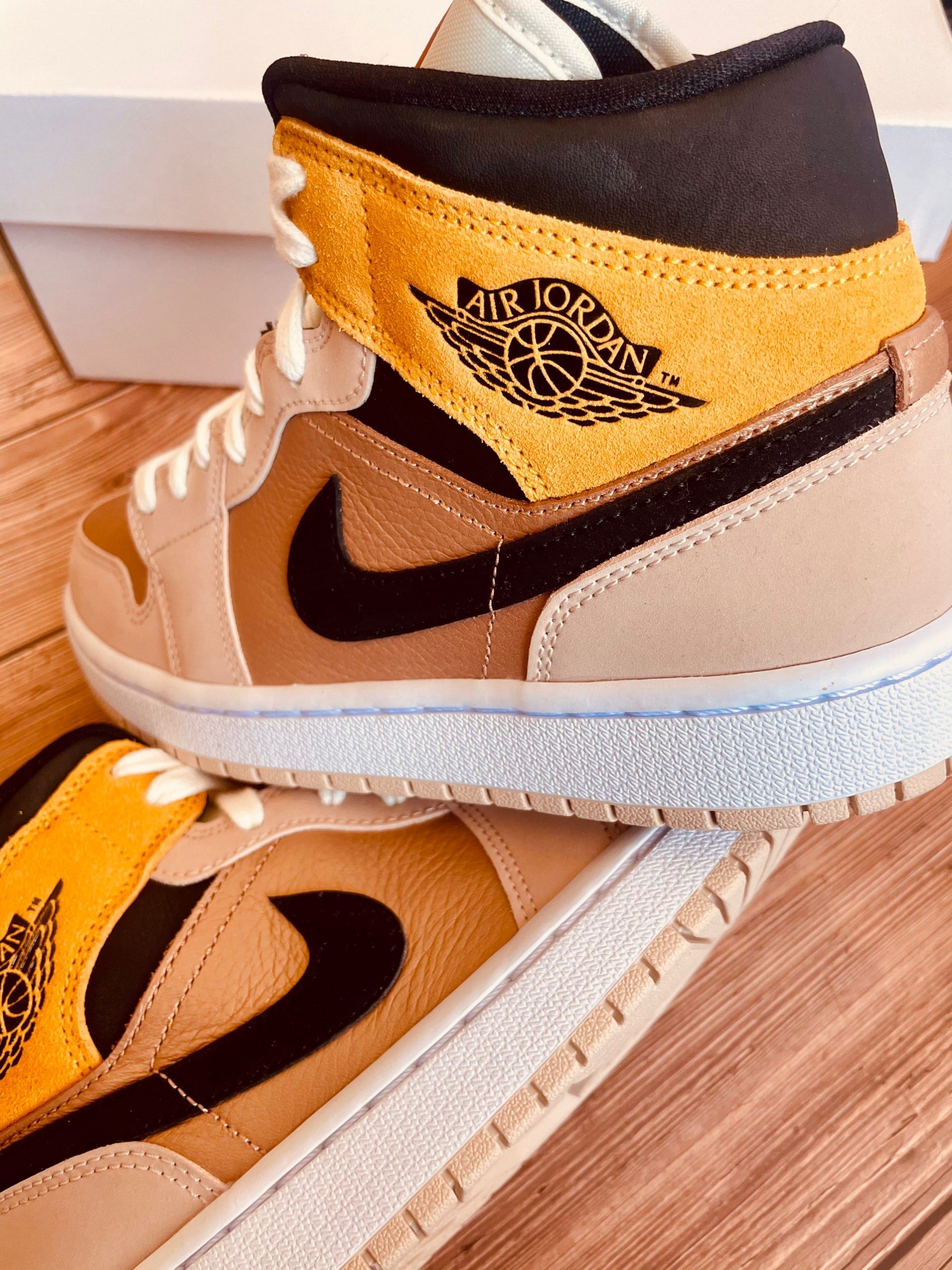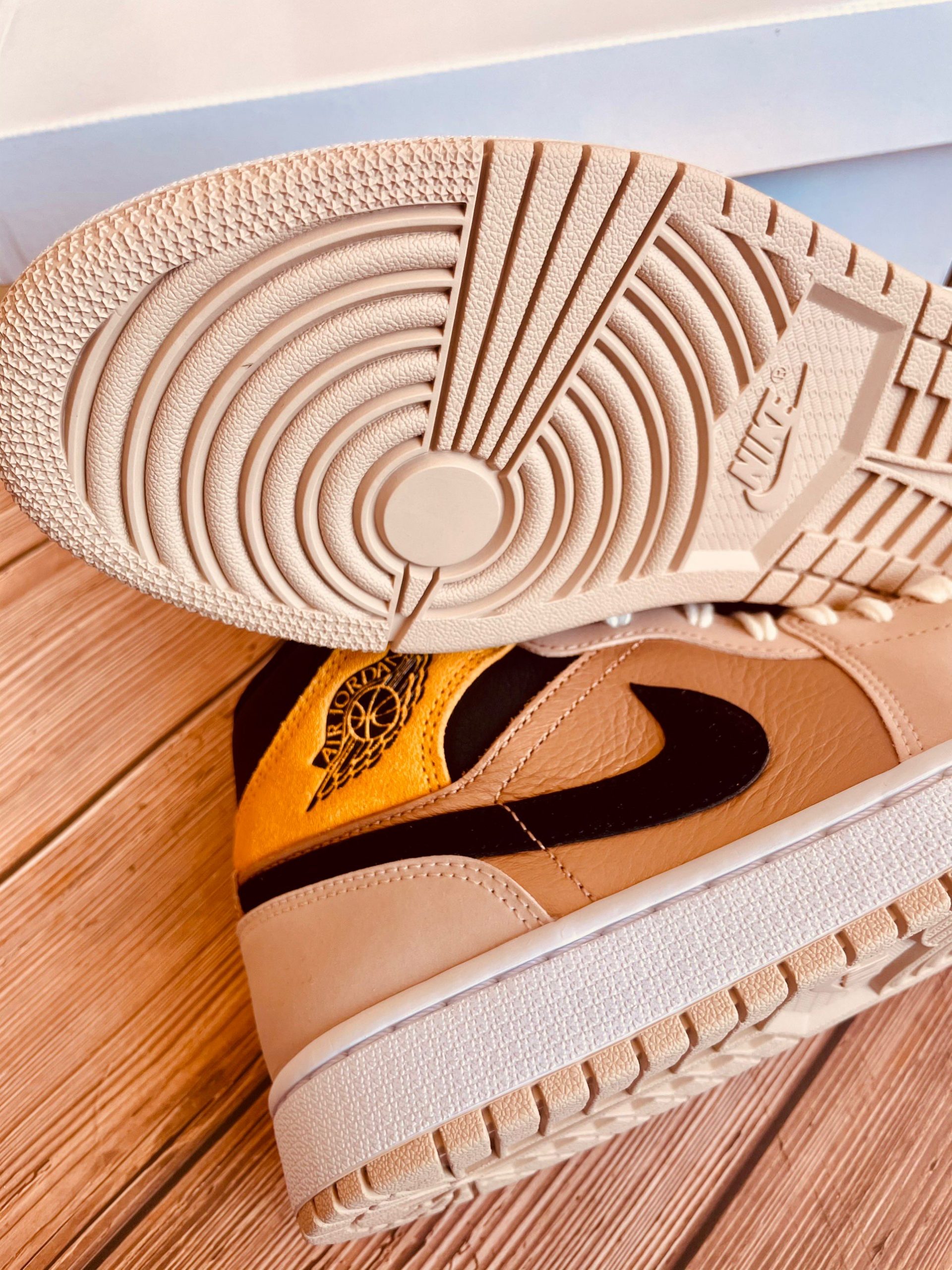 Looking closer, this mid-top iteration of the Air Jordan 1 features a Particle Beige, Black, and Metallic Red Bronze color combination. Highlighted with Red Bronze tumbled leather on the panels and toe box while Particle Beige leather adorns the eyestay, wraps the heel and toe. Following, Wheat suede covers the ankle flap while the Wings logo features Black. Speaking of Black, the shade also covers the Swoosh and ankle. The tongue and laces have an aged look, and White covers the midsole. Lastly, a Beige rubber outsole finishes the look.