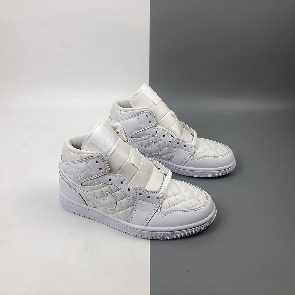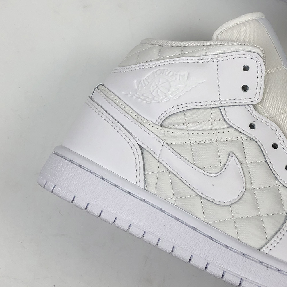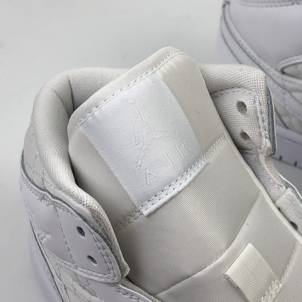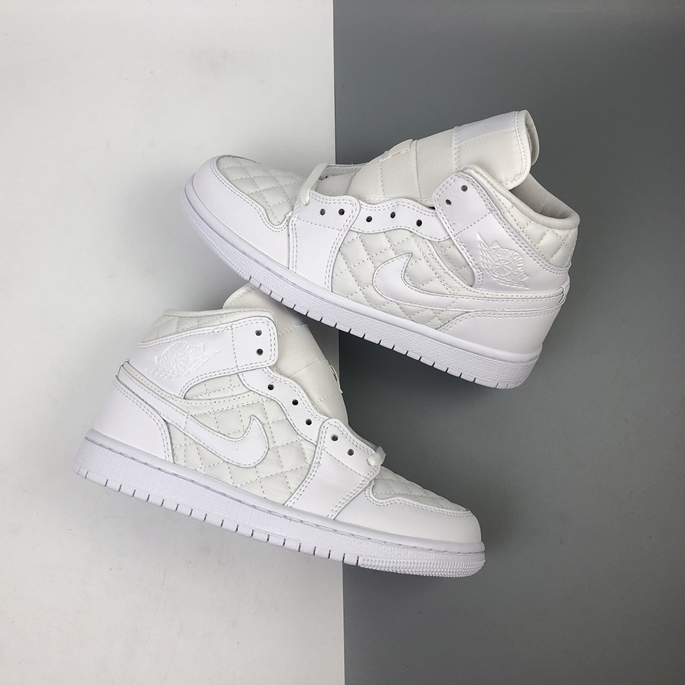 This “Triple White” offering that features a White quilted upper with White leather overlays. Matching tonal branding throughout, a Black Jumpman on the insoles atop a White rubber sole completes the design.
