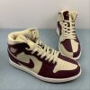 the design here is largely identical to its neutral-dominant predecessor. Tumbled leathers build out much of the construction, which features an additional seam that runs lengthwise down the center of the shoe. On one side, “Cherrywood Red” takes the helm, wrapping over top a base rendered entirely in “Beach.” The adjacent Wings follow suit, as does half of the tongue’s own branding. The label’s other side is effectively flipped, mirroring the coloring employed throughout the medial.