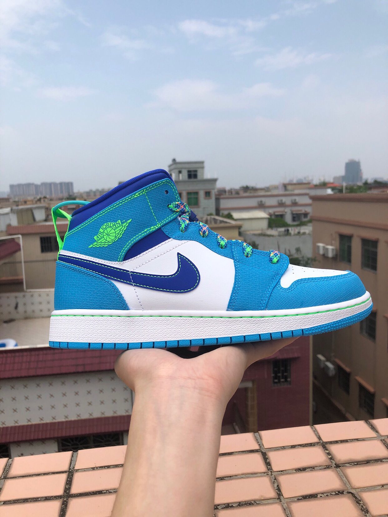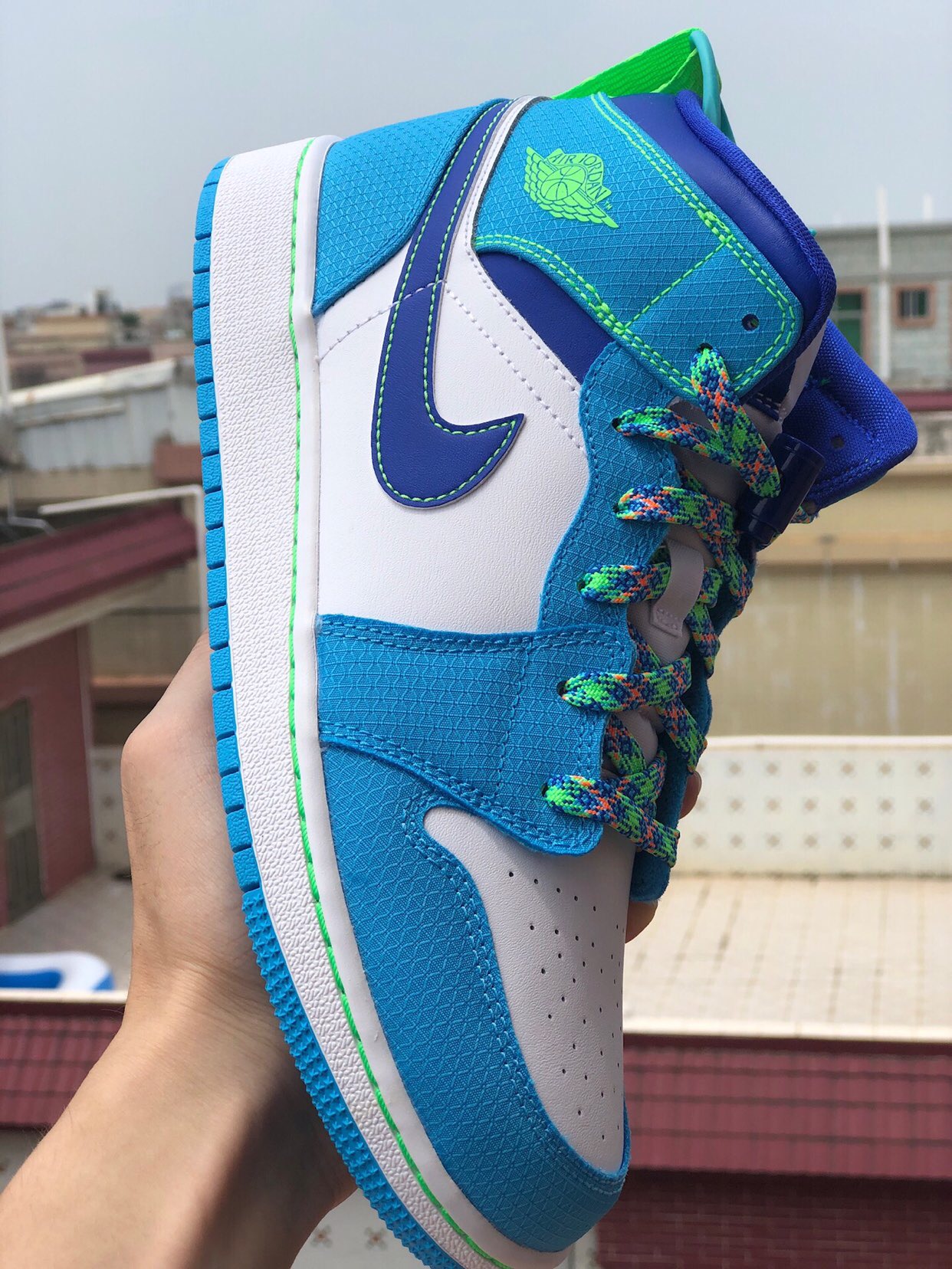 1 review for Air Jordan 1 Mid White Blue Neon Green For Sale