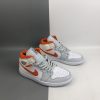 This offering of the mid-top Air Jordan 1 sports a White leather base with a Sail tone appearing in the rear. Pure Platinum tumbled and smooth leather overlays highlighted with Starfish Orange on the nylon ankle collar, interior, and Swoosh logos completes the design.