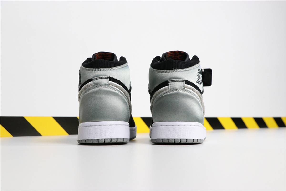 Silver satin on the forefoot and heel along with Orange accents on the tongue and a chenille Grey Swoosh add dimension and tie back to vintage sport jackets.