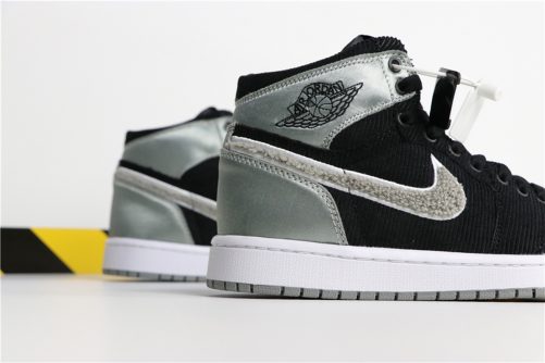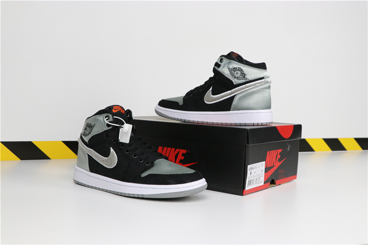 The Air Jordan 1 (her favorite of the brand’s silhouettes) Aleali May features high-end materials and lots of texture, including Black corduroy, which she said she chose because it reminds her of the house slippers from local LA markets her dad and uncle used to wear.
