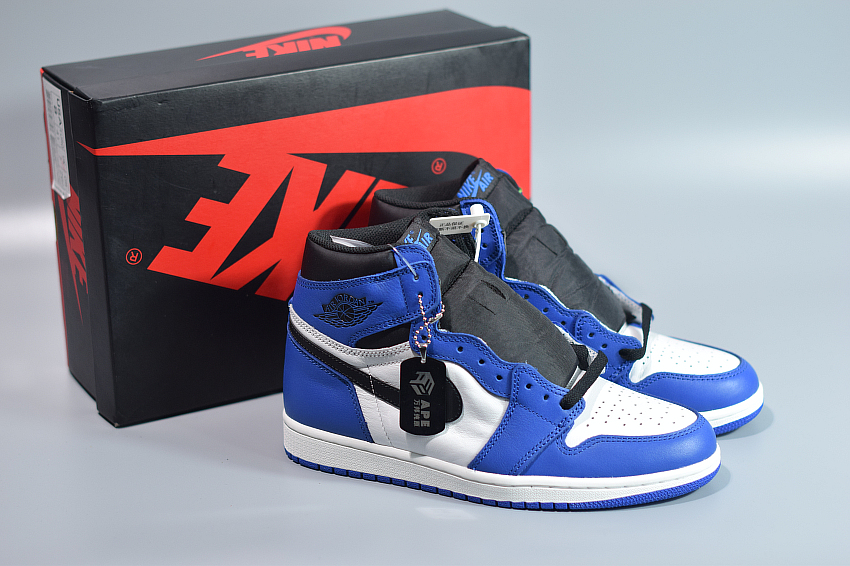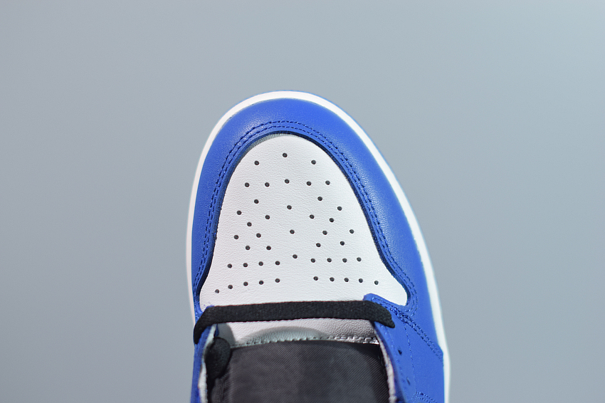 Featuring a White leather upper with Game Royal overlays and Black detailing on the Nike Air branding, Wings logo, laces and Nike Swoosh. Finishing touches includes a White midsole and Royal Blue rubber outsole.
