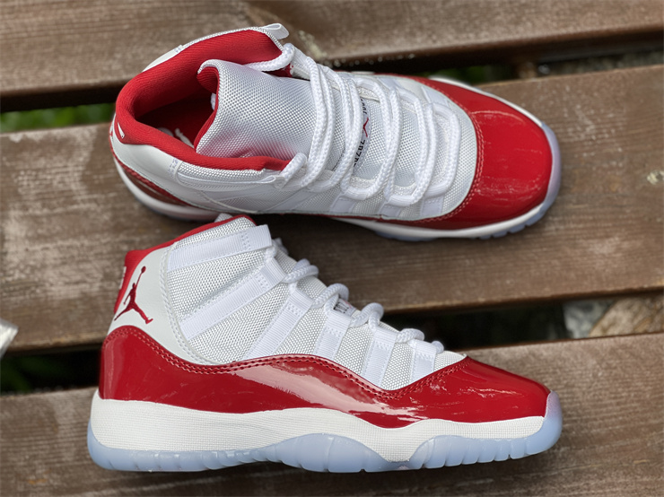 Clad in white and red colors, the upcoming shoe deviates from the design’s original roster of colorways for an ensemble that’s refreshing, yet rooted in heritage. Patent leather mudguards indulge in the Jordans‘ most eye-catching hue, as do several other components across the upper. Leather and nylon construction at the base layer and other accompanying panels deviate in a “colorless” look that allows for the pair’s “Cherry” flair to pop that much more. Underfoot, outsoles introduce a semi-translucent, icy blue finish to the mix, which promises to keep the holiday-ready Jordan 11 rocking clean – not yellowed – tread for years to come.