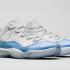 The Air Jordan 11 Low “UNC” is a low-top version of Michael Jordan’s eleventh signature shoe. It is inspired by MJ’s alma mater, the University of North Carolina, and features a mix of leather, Carbon Fiber, and Zoom Air. Paying homage to Michael Jordan’s alma mater, this Air Jordan 11 Low comes dressed in a University Blue and White color scheme. The defining University Blue color is featured prominently on the patent leather upper, while a White midsole and translucent outsole ground the clean design.