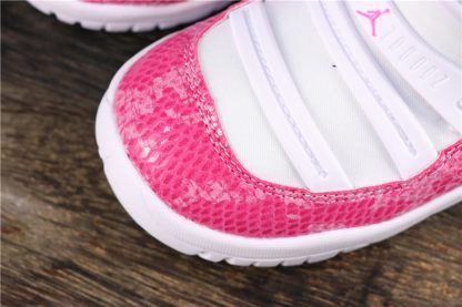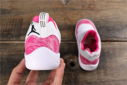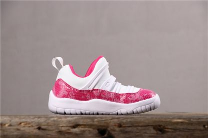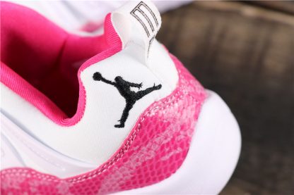 Dressed in a White, Watermelon, and Black color scheme. This Air Jordan 11 Low features a White leather upper with tonal overlays highlighted with a Pink Snakeskin wrapping the mudguard. Other details includes a darker tone of Pink on the inner lining, Jumpman branding, and portions of the outsole. Black appears on the tongue, completed with a milky translucent outsole.