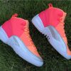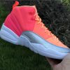 This Air Jordan 12 comes dressed in a Racer Pink, Hot Punch, Bright Mango and White color combination. As you can see this pair features tricolor blocking while Orange covers the toe, Punch lands on the mid-panel and Pink takes over the heel. Following Metallic Silver lands on the mudguard while White covers the midsole and outsole.