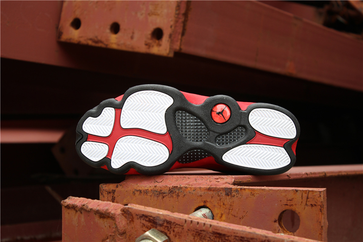 The Air Jordan 13 ‘Bred’ 2017 features Black leather across the toe, suede on the tongue and 3M reflective mesh across the panels. In addition, Red suede will run across the lower part of the shoe which extends across the heel. Other highlights include a Red Jumpman on the tongue and the traditional hologram by the heel.
