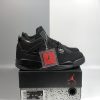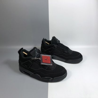 Dressed in a Black and Light Graphite color scheme. This Air Jordan 4 features a full Black-based upper with minor hints of Grey on the Jumpman Flight tongue tags. A Blackout Jumpman on the heel with a White logo on the Black rubber outsole completes the design.