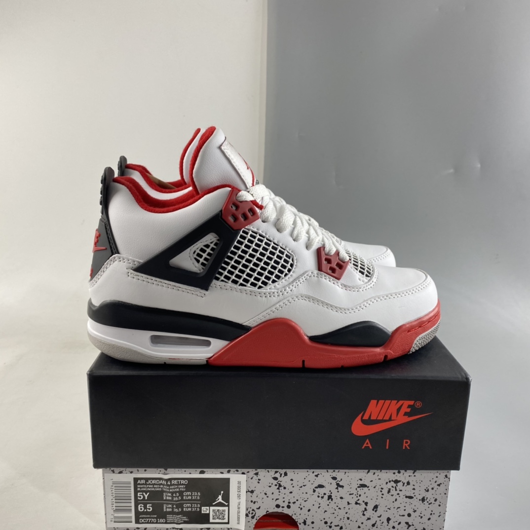 Dressed in a White, Black, Tech Grey, and Fire Red color scheme. This Air Jordan 4 will be returning in OG form with “Nike Air” branded heels, making it the first time the pair re-released in original form since its debut back in 1989. It last dropped in 2012 with a Jumpman on the heels, and in 2006 as the “Mars” edition.