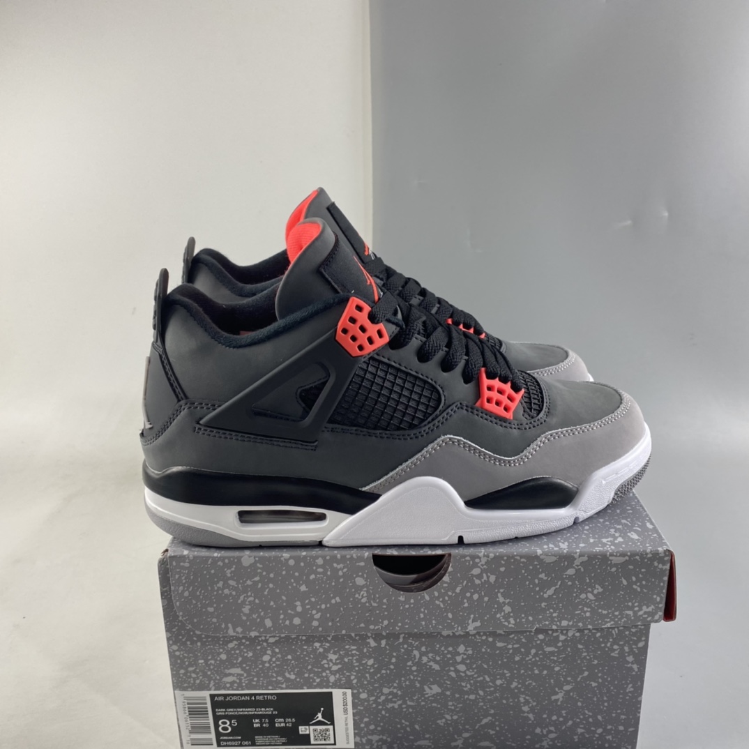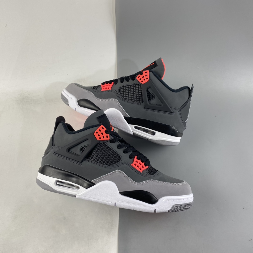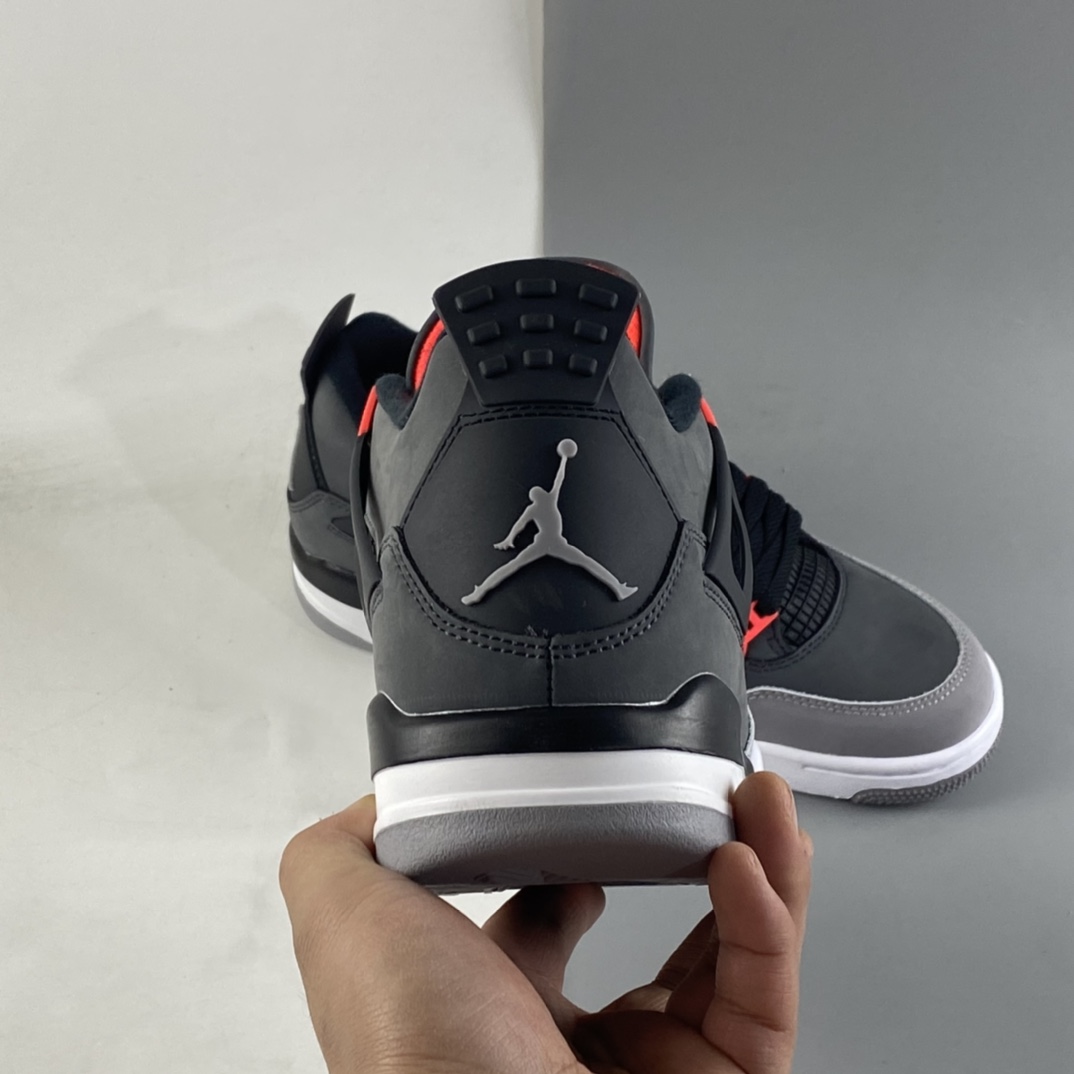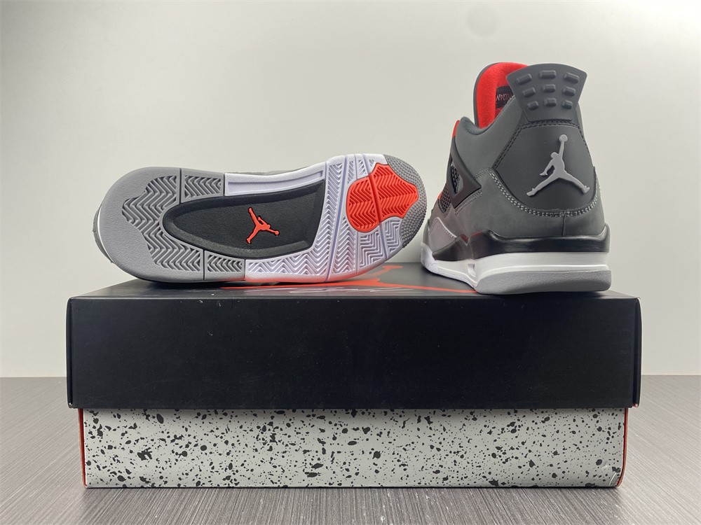 Dressed in a mix of Dark Grey, Infrared 23, Black, and Cement Grey. This Air Jordan 4 will have similarities to 2013’s “Green Glow” release featuring varying shades of Grey throughout its upper constructed in durable nubuck. Black lands on the netting, plastic wings, laces and molded heel tab highlighted with Infrared contrasting accents. A White midsole atop a signature Grey rubber outsole completes the design.