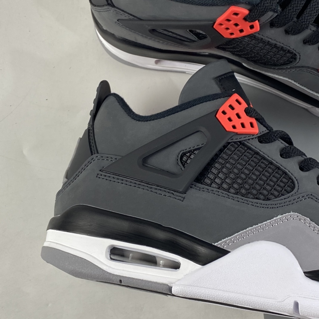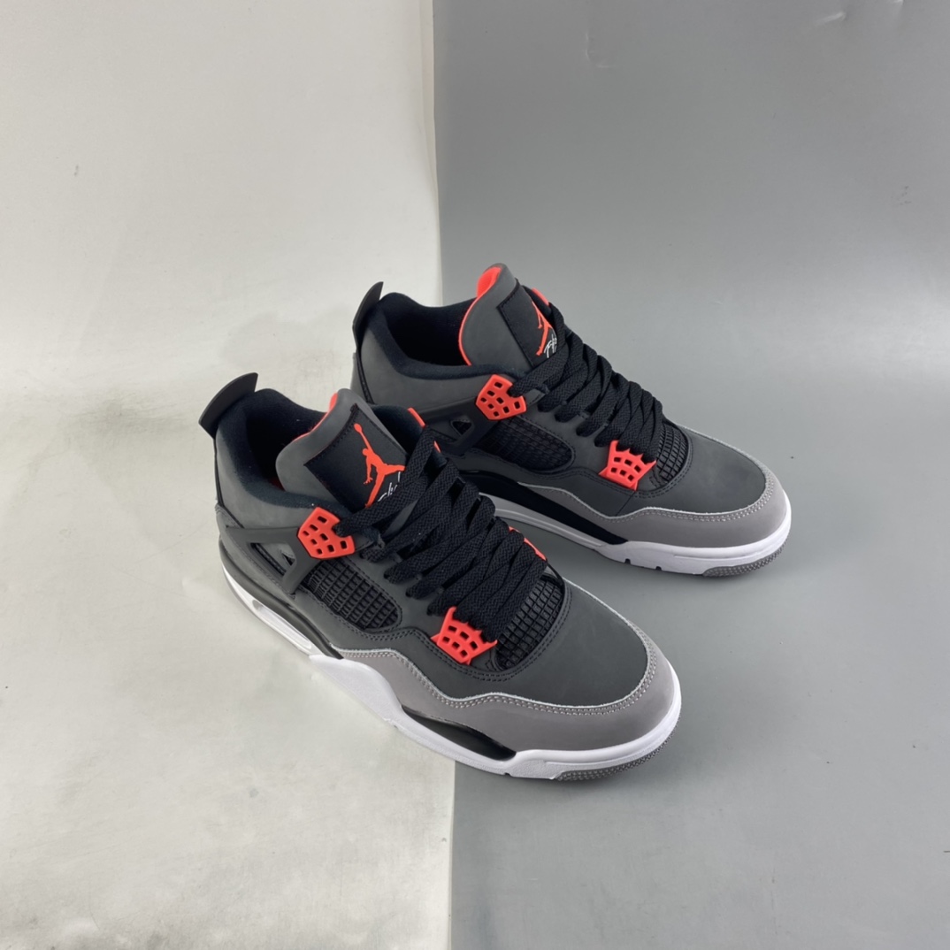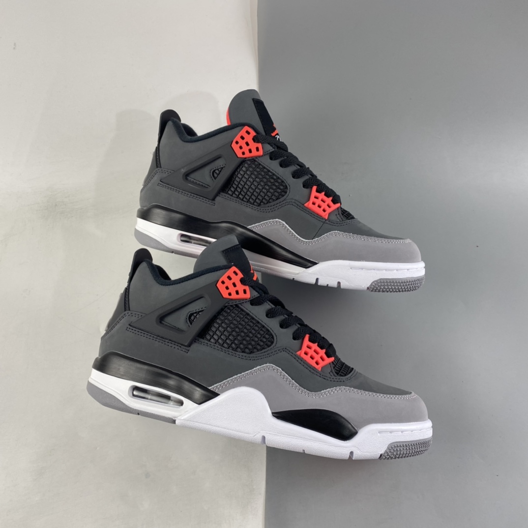 Dressed in a mix of Dark Grey, Infrared 23, Black, and Cement Grey. This Air Jordan 4 will have similarities to 2013’s “Green Glow” release featuring varying shades of Grey throughout its upper constructed in durable nubuck. Black lands on the netting, plastic wings, laces and molded heel tab highlighted with Infrared contrasting accents. A White midsole atop a signature Grey rubber outsole completes the design.