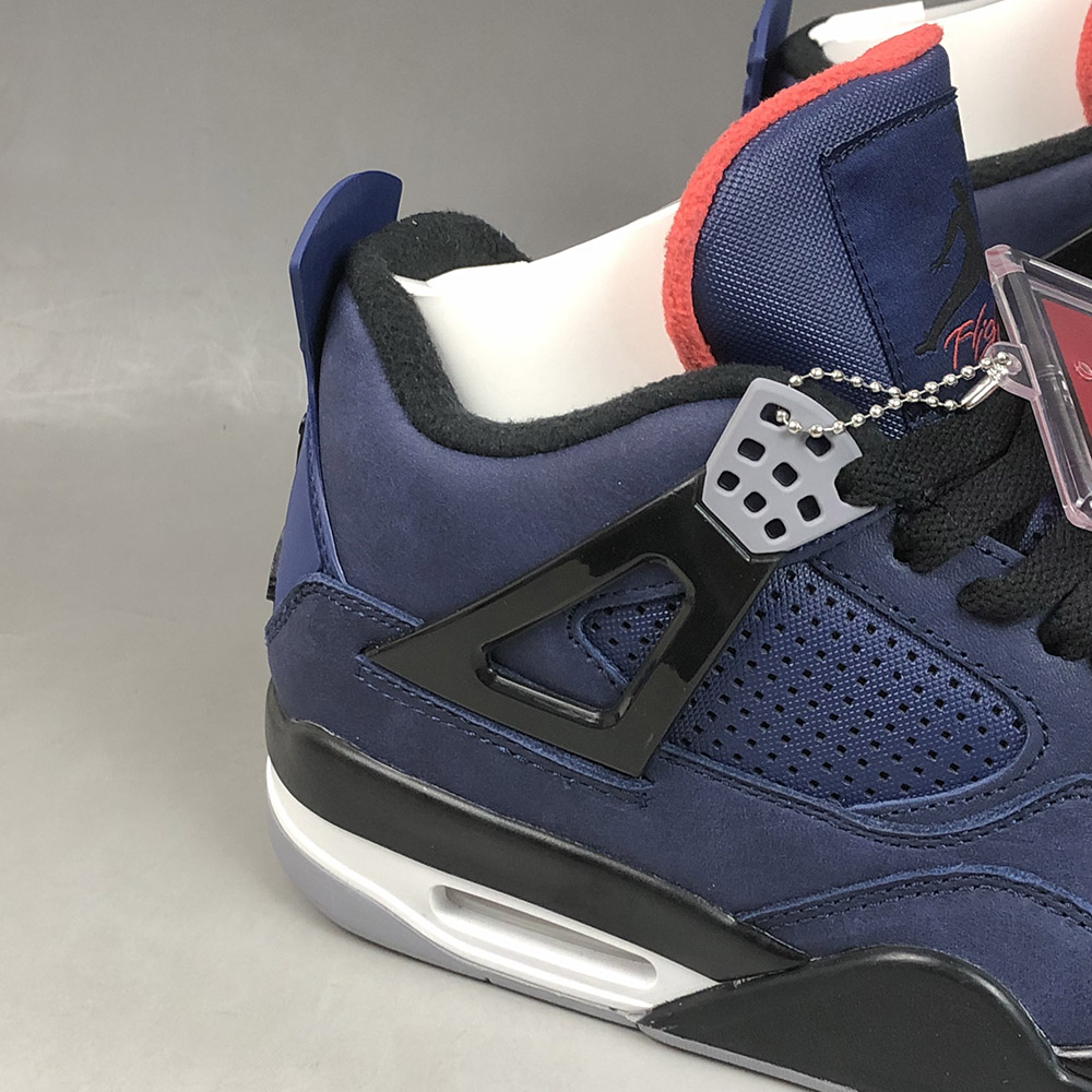 Dressed in a Loyal Blue, White, Habanero Red, and Black color scheme. This Air Jordan 4 has vibes that reminds you of Eminem’s “Encore” Air Jordan 4 with its Blue-based upper and Red contrasting accents. For the colder months, the model’s usual mesh underlays has been replaced with a canvas-like material that extends onto the tongue. A fleece-like material is also used on the liner to keep your feet warm.