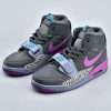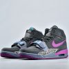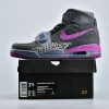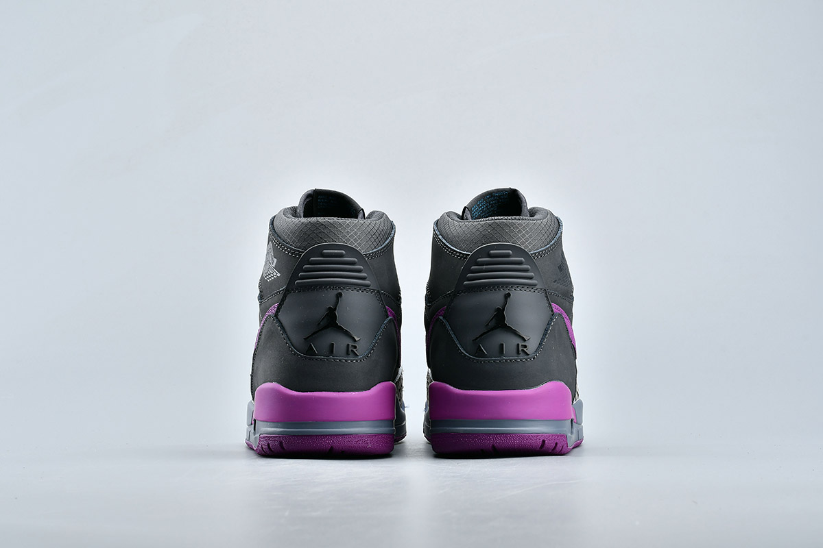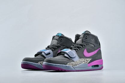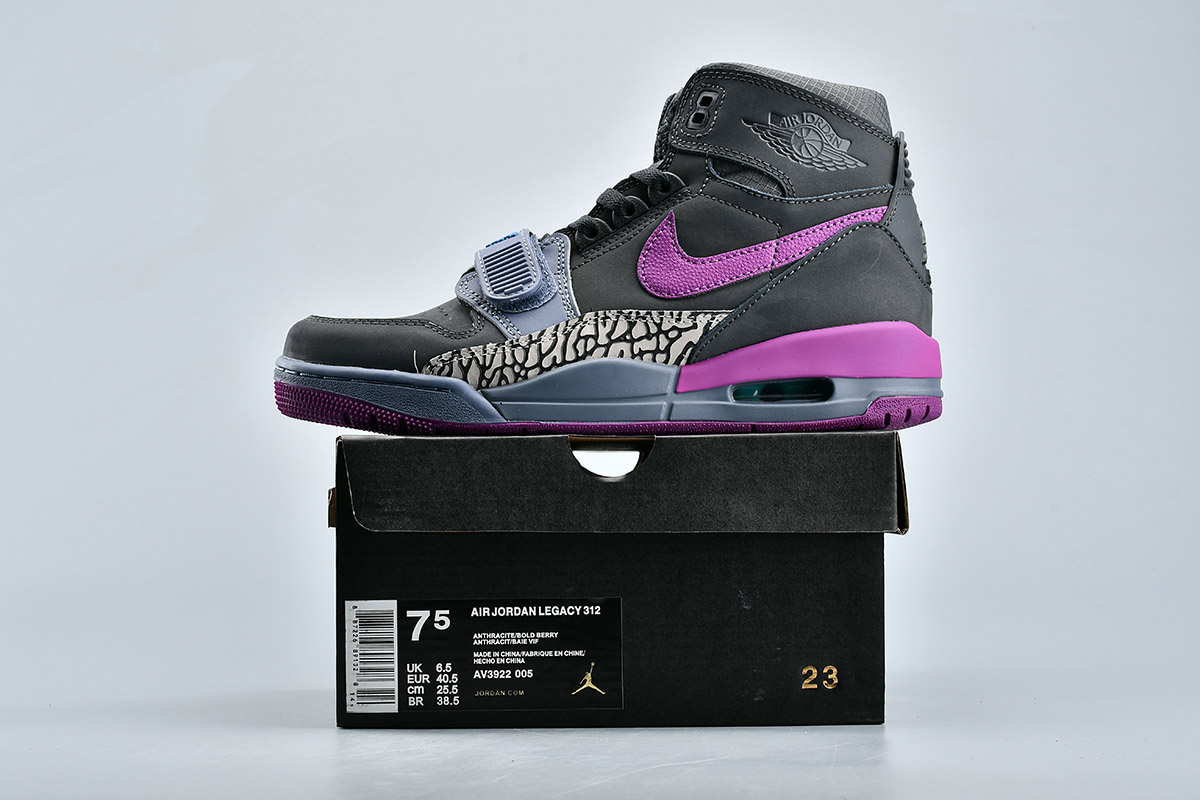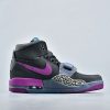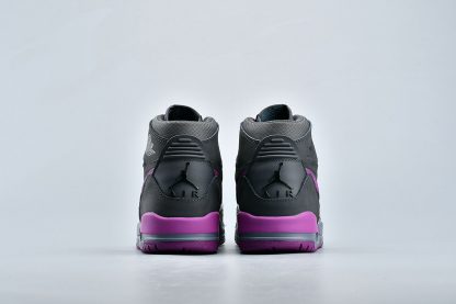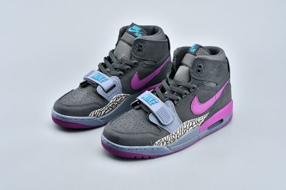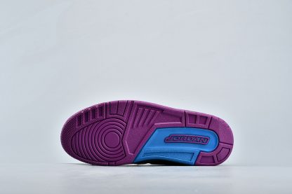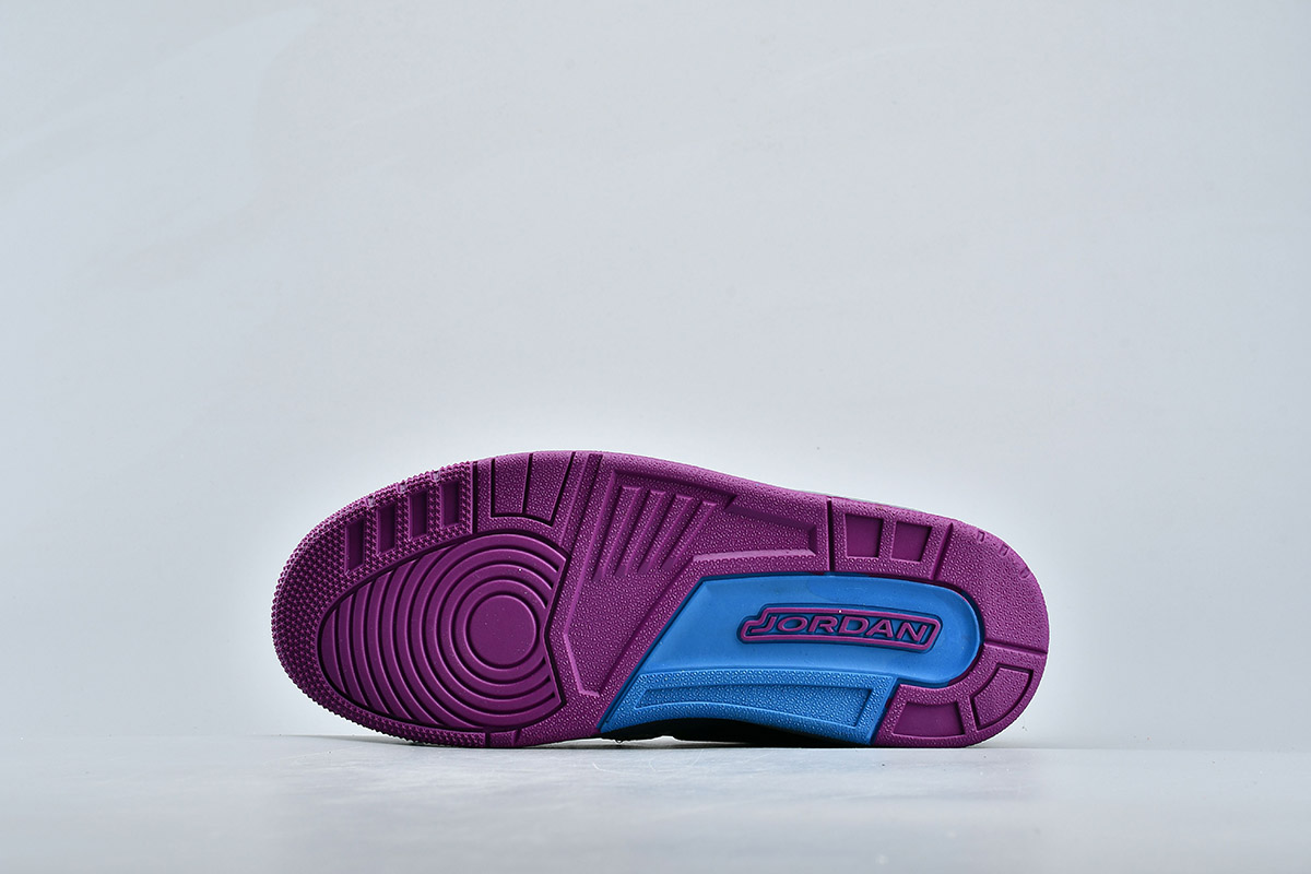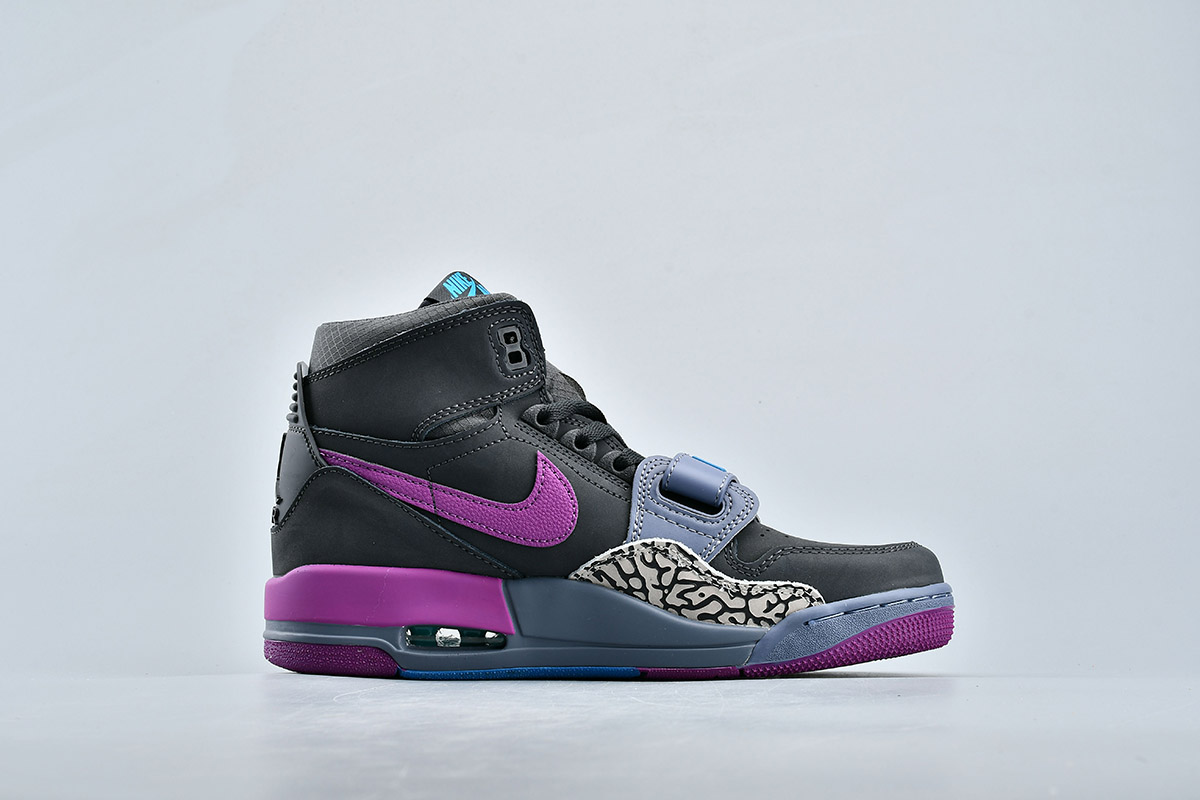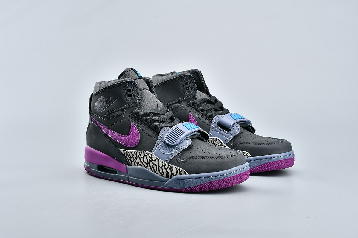 This offering sports a Dark Grey upper paired with Purple contrasting accents and a pebbled leather Swoosh logo on the sides. A light Grey/Slate Blue hue is used on the midfoot strap and midsole completed with a brighter Blue tone on the tongues, strap branding and outsole.