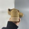 Similar to other seasonal footwear releases around this time of the year, the pair covers the entirety of its uppers—and even the ankle strap—in flax-colored suede. However, the side stripes opt for a lighter-colored suede and a coarser finish. Gold metal eyelets and dotted laces are design cues borrowed from autumn-ready boots that appear on this low-top silhouette. This style even features a gold ball chain hangtag that features the atmos logo embossed onto a suede patch. A plush, chocolate brown sockliner and gum brown sole unit complete the tonal look for a sleek makeover just in time for sweater weather.